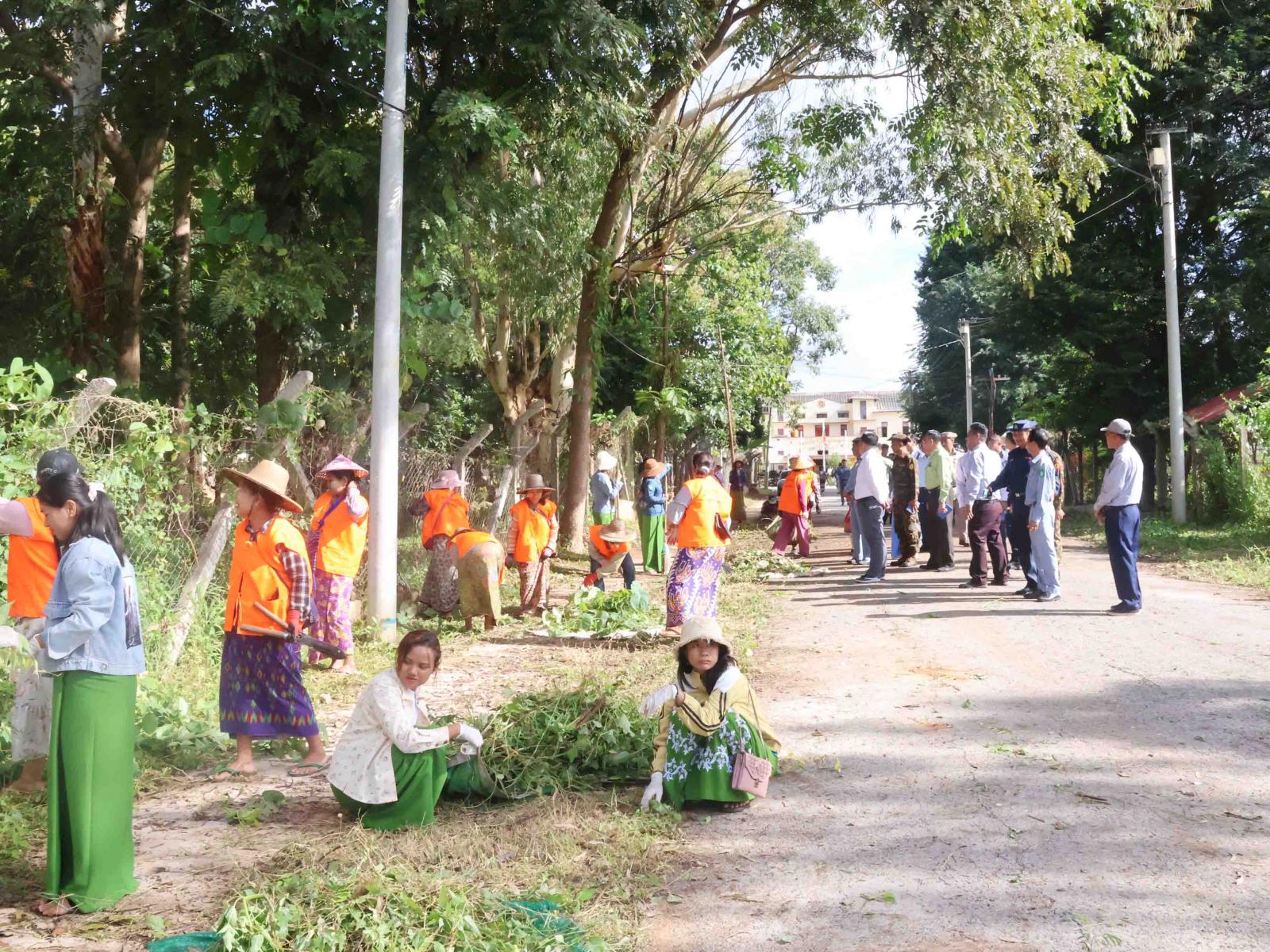 ထို့နောက် ပြည်နယ်ဝန်ကြီးချုပ်နှင့် တာဝန်ရှိသူများသည် လွိုင်ကော်ပြည်သူ့ဆေးရုံကြီးသို့ သွားရောက်၍ တပ်မတော်တပ်ရင်းတပ်ဖွဲ့များ၊ မြန်မာနိုင်ငံရဲတပ်ဖွဲ့၊ မီးသတ်တပ်ဖွဲ့နှင့် ဌာနဆိုင်ရာ ဝန်ထမ်းများမှ စုပေါင်းသန့်ရှင်းရေးဆောင်ရွက်နေမှုအား စစ်ဆေးကြည့်ရှုအားပေးခဲ့ပြီး ပြန်လည်ဝင်ရောက်တာဝန်ထမ်းဆောင်လျက်ရှိသည့် ဆရာဝန် သူနာပြုများနှင့် ရုံးဝန်ထမ်းများ နေထိုင်မှုအဆင်ပြေစေရန်အတွက် ဝန်ထမ်းအိမ်ရာများ ပြုပြင်နိုင်ရေး ရေ၊မီး ရရှိရေးနှင့် သန့်ရှင်းသပ်ရပ်ရေး ဆောင်ရွက်ပေးရန်နှင့် သူနာပြုနှင့်သားဖွားအသင်းခွဲရုံးကို အမြန်ပြန်လည်ပြုပြင်ပြီး ဝန်ထမ်းများ နေထိုင်ရေးကို စီစဉ်ဆောင်ရွက်ပေးရန်၊ တာဝန်ရှိသူများအား မှာကြားခဲ့ပြီးနောက် လောဓမ္မပရိယတ္တိစာသင်တိုက် ဘုန်းကြီးကျောင်းသို့ သွားရောက်ကာ ကျောင်းဝန်းအတွင်း တပ်မတော်တပ်ရင်းတပ်ဖွဲ့များ ၊ မြန်မာနိုင်ငံရဲတပ်ဖွဲ့ ၊ မီးသတ်တပ်ဖွဲ့နှင့် ဌာနဆိုင်ရာ ဝန်ထမ်းများမှ စုပေါင်းသန့်ရှင်းရေးဆောင်ရွက်နေမှုများကို ဆက်လက်ကြည့်ရှု အားပေးခဲ့ပြီး အကြမ်းဖက်သောင်းကျန်းသူများ အဖျက်အမှောင့် လုပ်ရပ်များကြောင့် ထိခိုက်ပျက်စီးခဲ့သည့် ကျောင်းအဝင်မုခ်ဦးနှင့် ကျောင်းဆောင်မျက်နှာကြက်များ ပြန်လည်ပြုပြင် ပေးရန်တာဝန်ရှိသူများအား မှာကြားခဲ့သည်။