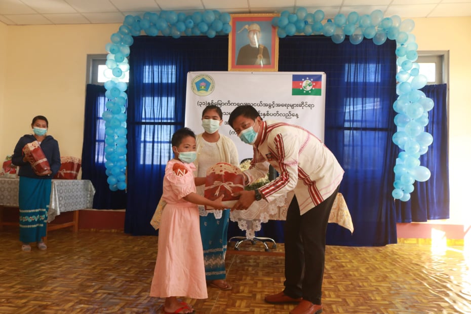 ထို့နောက် ကလေးငယ်များအား လက်ဆောင်ပစ္စည်းပေးအပ်ခြင်း ဆောင်ရွက်ရာ ပြည်နယ်လူမှုရေးဝန်ကြီး ဦးပေါင်လွန်းမင့်ထန်နှင့် တာဝန်ရှိသူများက လက်ဆောင်ပစ္စည်းများကို ကလေးငယ်များအား ပေးအပ် ခဲ့ကြပြီး နောက် ကလေးငယ်များမှ တေးသီချင်းများဖြင့် ဖျော်ဖြေ တင်ဆက်ခဲ့ကြသည်။