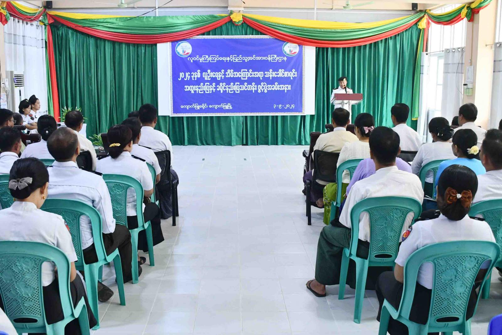 ရခိုင်ပြည်နယ်၊ ကျောက်ဖြူမြို့၌ ၂၀၂၄ ခုနှစ်၊ လူဦးရေနှင့်အိမ်အကြောင်းအရာ သန်းခေါင်စာရင်းကောက်ယူခြင်းလုပ်ငန်း အထူးနည်းပြနှင့် ခရိုင်နည်းပြသင်တန်း ဖွင့်ပွဲအခမ်းအနားကို ယမန်နေ့နံနက်ပိုင်းက ခရိုင်အထွေထွေအုပ်ချုပ်ရေးဦးစီးဌာန၊ အစည်းအဝေးခန်းမ၌ ကျင်းပပြုလုပ်သည်။