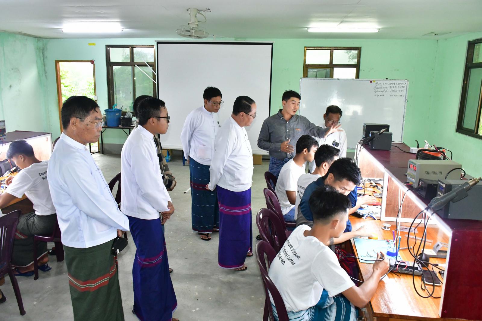 ယင်းနောက် ပြည်နယ်ဝန်ကြီးချုပ်နှင့်အဖွဲ့သည် အဆင့်မြင့်မိုဘိုင်းဖုန်းသင်တန်း စာတွေ့လက်တွေ့ သင်ကြားပို့ချမှုများအား လှည့်လည်ကြည့်ရှုအားပေး၍ အဆိုပါကျွမ်းကျင်မှုလေ့ကျင့်ရေး သင်တန်းကျောင်း၌ National Skill Standards Authority (NSSA) မြန်မာနိုင်ငံလုပ်သားများ ကျွမ်းကျင်မှု ‘စံ’ သတ်မှတ်ပြဌာန်းရေးအဖွဲ့မှ Assessment Center ကျွမ်းကျင်မှု စစ်ဆေးအကဲဖြတ်ရေးဌာနတွင် ပြည်နယ်အတွင်းရှိ လုပ်သား ၂၅ ဦးအား လျှပ်စစ်ကျွမ်းကျင်လုပ်သား(အဆောက်အဦ) အဆင့်-၁ စိစစ်အကဲဖြတ်နေမှုအား ကြည့်ရှုအားပေးကာ တာဝန်ရှိသူများအား လိုအပ်သည်များ မှာကြားခဲ့ကြောင်း သိရသည်။