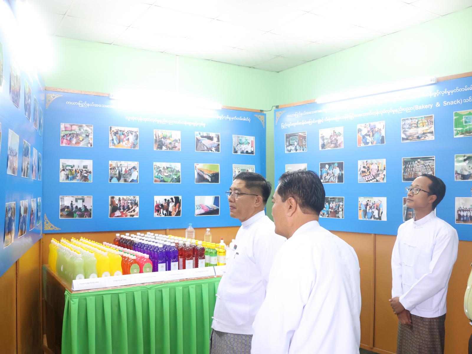 ယင်းနောက် ပြည်နယ်ဝန်ကြီးချုပ်နှင့်တာဝန်ရှိသူများက သင်တန်းသားများနှင့် ရင်းရင်းနှီးနှီးနှုတ်ဆက် စကားပြောကြားခဲ့ပြီး ခင်းကျင်းပြသထားသည့် လူသုံးကုန်ထုတ်ပစ္စည်းများ ၊ မှတ်တမ်းဓါတ်ပုံများအား လှည့်လည်ကြည့်ရှုခဲ့ကြသည်။