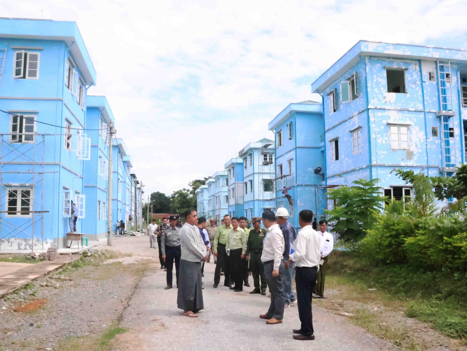 ဆက်လက်၍ မြို့ပြနှင့်အိမ်ရာဖွံ့ဖြိုးရေးဦးစီးဌာန၏ စုပေါင်းဝန်ထမ်းအိမ်ရာသို့ရောက်ရှိရာ မြို့ပြနှင့်အိမ်ရာဖွံ့ဖြိုးရေးဦးစီးဌာန ပြည်နယ်ညွှန်ကြားရေးမှူးက ပြန်လည်ထူထောင်ရေးရန်ပုံငွေဖြင့်ဆောင်ရွက်နေသည့် တိုက်အမှတ်(၃၃၊ ၃၅၊ ၃၆၊ ၃၇) နှင့် မြို့နယ်ဦးစီးမှူးရုံး ဆောင်ရွက်ပြီးစီးမှုအခြေအနေများကို ရှင်းလင်းတင်ပြသည်။ ဝန်ကြီးချုပ်က “ပြန်လည်တာဝန်ထမ်းဆောင်ကြသည့် ဝန်ထမ်းများ စိတ်အေးချမ်းသာစွာနေထိုင်နိုင်ရေး ယခုလကုန်တွင် ပြီးစီးအောင်ဆောင်ရွက်သွားရန်၊ အိမ်ရာသို့ ဝင်ထွက်သွားလာသည့် အဝင်လမ်းအား သန့်ရှင်းသပ်ရပ်ရေးပြုပြင်သွားရန်၊ ယခုပြုပြင်သည့် တိုက်ခန်းများအပြင် အခြားတိုက်(၄)လုံးအား ပြင်ဆင်နိုင်ရေးဆောင်ရွက်သွားရန်” တို့ကို မှာကြားသည်။ ထို့နောက် ဒေါဥခူစုပေါင်းဝန်ထမ်းအိမ်ရာသို့ ရောက်ရှိရာ ပြည်နယ်ဝန်ကြီးချုပ်က “(၄)ခန်းတွဲ၊ (၅)ထပ်ဝန်ထမ်းအိမ်ရာ (၂)လုံးအား ဝန်ထမ်းများပြန်လည်နေထိုင်နိုင်ရေးအတွက် ပြုပြင်နိုင်ရေးကို ဆောင်ရွက်သွားရန်နှင့် ပြည်နယ်အထွေထွေအုပ်ချုပ်ရေးဦးစီးဌာန ဝန်ထမ်းအိမ်ရာများအား ပြုပြင်နိုင်ရေးဆောင်ရွက်သွားရန်” မှာကြားခဲ့သည်။