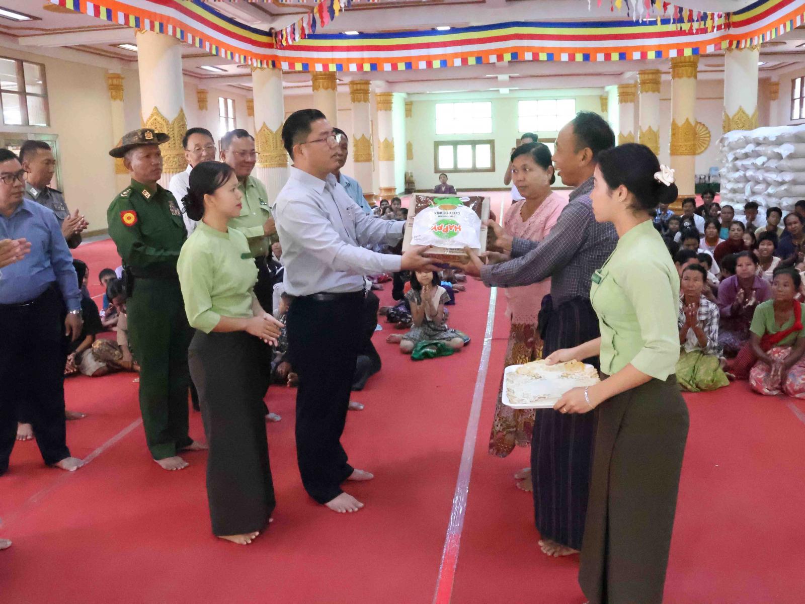 ရှေးဦးစွာ ပြည်နယ်ဝန်ကြီးချုပ်၊ ပြည်နယ်အစိုးရအဖွဲ့ဝင်များ၊ တာဝန်ရှိသူများသည် သာသနာ့ဗိမာန်တော်ကြီးသို့ရောက်ရှိ၍ ရေဘေးသင့်ပြည်သူများအား စားသောက်ဖွယ်ရာများနှင့် ထမင်းဘူးများဝေငှကာ ကျန်းမာရေးစောင့်ရှောက်ပေးနေမှုများအားကြည့်ရှုပြီး အားပေးစကားပြောကြားခဲ့သည်။ ပြည်နယ်ဝန်ကြီးချုပ်က “ယခုလ ၉ ရက်နေ့မှစပြီး ဘီလူးချောင်းရေမြင့်တက်လာမှုကြောင့် လွိုင်ကော်မြို့ရှိ ရပ်ကွက်များအတွင်း ရေများစတင်ဝင်ရောက်ခဲ့ကြောင်း၊ ကြိုတင်ကာကွယ်ရေးလုပ်ငန်းများ စနစ်တကျဆောင်ရွက်နိုင်မှုကြောင့် လူသေဆုံးမှုများမရှိခဲ့ကြောင်း၊ ယခုအခါ လွိုင်ကော်မြို့နယ်အတွင်းရှိ ရေဘေးသင့်ပြည်သူများကို ကယ်ဆယ်ရေးစခန်း(၂)ခု ဖွင့်လှစ်ထားပြီး လိုအပ်သည့် ထောက်ပံ့မှုများလည်း ပေးလျက်ရှိကြောင်း၊ စိုက်ပျိုးရေးလုပ်ငန်းများ ပျက်စီးမှုများအတွက် ပြန်လည်အစားထိုးစိုက်ပျိုးနိုင်ရေး ဆောင်ရွက်ပေးသွားမည်ဖြစ်ကြောင်း၊ စီးပွားရေးလုပ်ငန်းရှိသူများ၏ ပျက်စီးဆုံးရှုံးမှုရှိပါက လုပ်ငန်းအား ပြန်လည်ထူထောင်နိုင်ရေးအတွက်လည်း ပံ့ပိုးပေးသွားမည်ဖြစ်ကြောင်း” ပြောကြားပြီး ရေဘေးသင့်ပြည်သူများအား ရင်းရင်းနှီးနှီးတွေ့ဆုံကာ အားပေးစကားများ ပြောကြားခဲ့သည်။