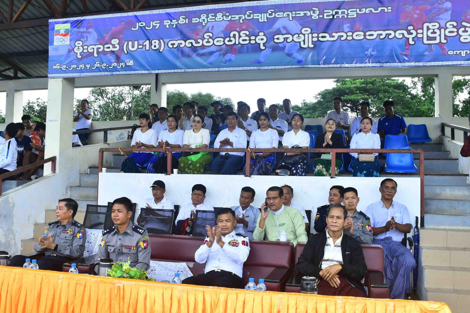 ရခိုင်ပြည်နယ်၊ ကျောက်ဖြူမြို့၌ ၂၀၂၄ ခုနှစ်၊ ခရိုင်စီမံအုပ်ချုပ်ရေးအဖွဲ့ ဥက္ကဋ္ဌဖလား၊ မိုးရာသီ(U-18) ကလပ်ပေါင်းစုံ အမျိုးသားဘောလုံးပြိုင်ပွဲ ကွင်းဖွင့်ပွဲအခမ်းအနားကို ယမန်နေ့မွန်းလွဲပိုင်းက အစိုးရရပ်ကွက်ရှိ မြို့မအားကစားဘောလုံးကွင်းကြီးတွင် ကျင်းပပြုလုပ်ရာ ခရိုင်စီမံအုပ်ချုပ်ရေးအဖွဲ့ ခေတ္တဥက္ကဋ္ဌနှင့် စီမံအုပ်ချုပ်ရေးအဖွဲ့ဝင်များ၊ မြို့နယ်စီမံအုပ်ချုပ်ရေးအဖွဲ့ ဥက္ကဋ္ဌနှင့် ဌာနဆိုင်ရာများ၊ အားကစားနှင့်ကာယပညာဦးစီးဌာနမှ ခရိုင်ဦးစီးမှူးနှင့်ဝန်ထမ်းများ၊ ဘောလုံးပွဲဝါသနာရှင်ပြည်သူများမှ တခဲနက်လာရောက်ကြည့်ရှုအားပေးသည်။