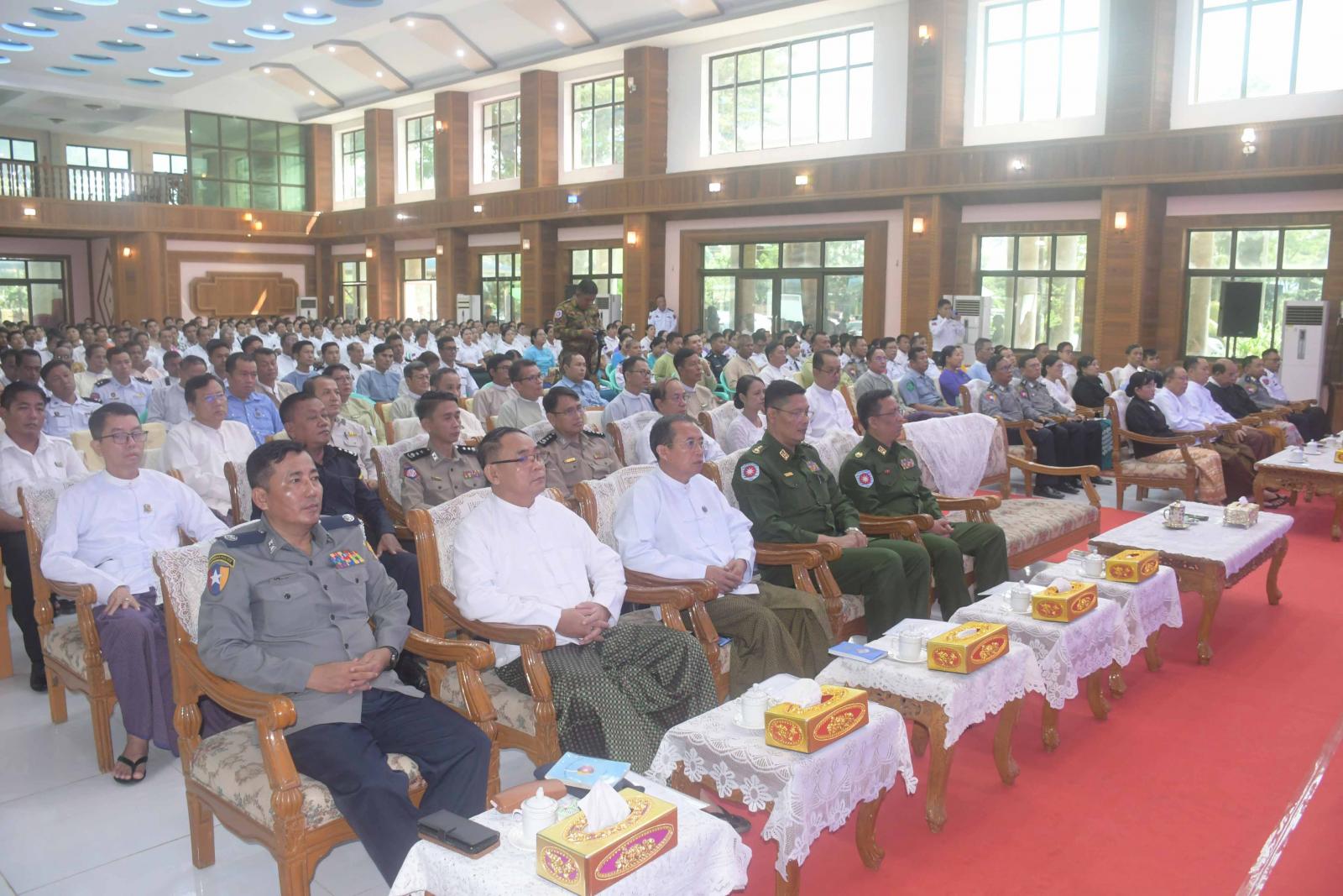 ၂၀၂၄ ခုနှစ်၊ လူဦးရေနှင့်အိမ်အကြောင်းအရာ သန်းခေါင်စာရင်း မြို့နယ်အဆင့် စာရင်းစစ်၊ စာရင်းကောက်သင်တန်းဖွင့်ပွဲ အခမ်းအနားကို ယနေ့နံနက်ပိုင်းက စစ်တွေမြို့၊ ခိုင်သဇင်ခန်းမ၌ ကျင်းပရာ ရခိုင်ပြည်နယ်ဝန်ကြီးချုပ် ဦးထိန်လင်း၊ ပြည်နယ်တရားလွှတ်တော်တရားသူကြီးချုပ်၊ ပြည် နယ်အစိုးရအဖွဲ့ဝင်များ၊ စစ်တွေတပ်နယ်မှ တပ်မတော်အရာရှိကြီးများ၊ ပြည်နယ်၊ ခရိုင်၊ မြို့နယ် သန်းခေါင်းစာရင်းကော်မတီအဖွဲ့ဝင်များ၊ သင်တန်းနည်းပြများ၊ သင်တန်းသား၊ သင်တန်းသူများနှင့် ဖိတ်ကြားထားသူများ တက်ရောက်ကြသည်။