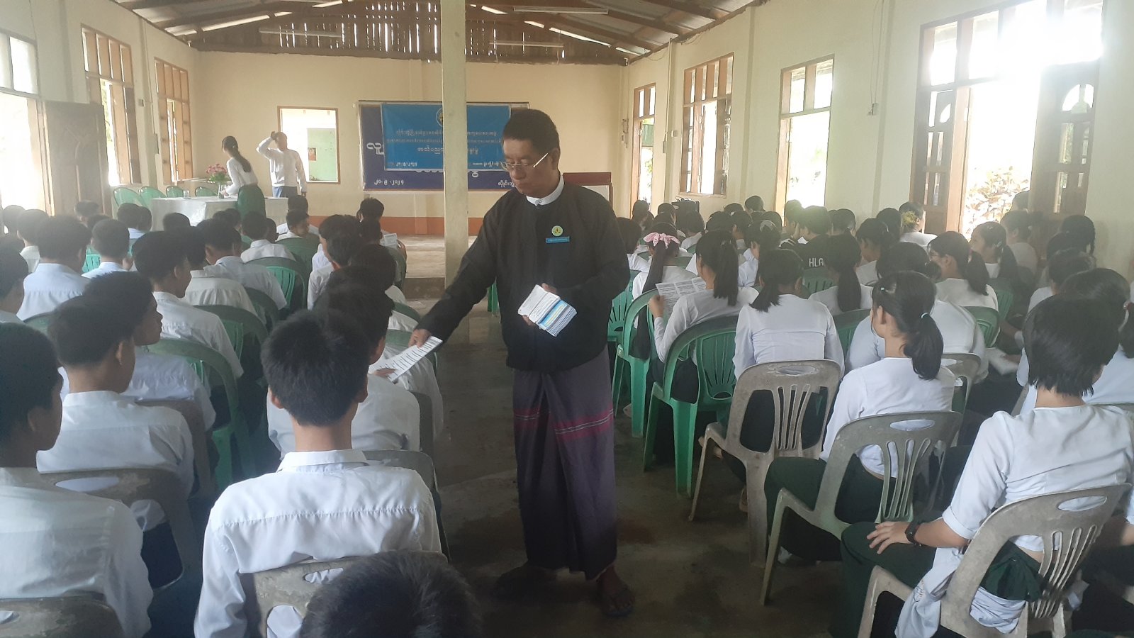 ထို့နောက် မြို့နယ်မူးယစ်ဆေးဝါးဆန့်ကျင်ရေးအသင်းဥက္ကဋ္ဌ ဦးဌေးဝင်းက မူးယစ်ဆေးဝါးအန္တရာယ် များ၊ အမျိုးအစားများ၊ သုံးစွဲသူများ၏ စရိုက်လက္ခဏာများ၊ မူးယစ်ဆေးဝါးဆေးသုံးစွဲခြင်းကြောင့် ဖြစ်ပေါ်လာနိုင်သည့် ဆိုးကျိုးများ၊ ဥပဒေပြဋ္ဌာန်းချက်များ၊ ပြစ်မှုပြစ်ဒဏ်များ၊ ကျောင်းသား၊ ကျောင်းသူများအနေဖြင့် အနာဂတ်လှပဖို့အတွက် မူးယစ်ဆေးဝါးကို ရှောင်ရှားကြရန် လိုအပ်ကြောင်း အသိပညာပေး ဟောပြောခဲ့ပြီး ကရင်ပြည်နယ် ဥပဒေဆိုင်ရာ အထောက်အကူပေးရေးအဖွဲ့မှ ထုတ်ဝေသော ဥပဒေနှင့်အညီ ခုခံချေပဖို့ နွမ်းပါးပြည်သူကူညီစို့ ဆောင်ပုဒ်နှင့်အညီ ဥပဒေဆိုင်ရာ အထောက်အကူပေးရေးအဖွဲ့ ဖွဲ့စည်းရခြင်း၏ ရည်ရွယ်ချက်၊ အခြေခံမူ၊ ဥပဒေဆိုင်ရာ အထောက်အကူ တောင်းခံခွင့်ရှိသူများ၊ ဥပဒေဆိုင်ရာ အထောက်အကူပေးနိုင်သည့် လုပ်ငန်းများ၊ နည်းလမ်းများ၊ ဆက်သွယ်နိုင်သည့် ဖုန်းနံပါတ်များ ပါဝင်သည့် လက်ကမ်းစာစောင်များကို ဖြန့်ဝေပေးခြင်း၊ ပြန်ကြားရေးနှင့်ပြည်သူ့ဆက်ဆံရေးဦးစီးဌာနမှ ပြသထားသော လူကုန်ကူးမှုတာဆီးကာကွယ်ရေးနှင့် မူးယစ်ဆေးဝါး၏ ဆိုးကျိုးအန္တရာယ်များကို ကျောင်းသား၊ ကျောင်းသူများက စိတ်ပါဝင်စားစွာ လေ့လာကြည့်ရှုခဲ့ကြောင်း သိရသည်။