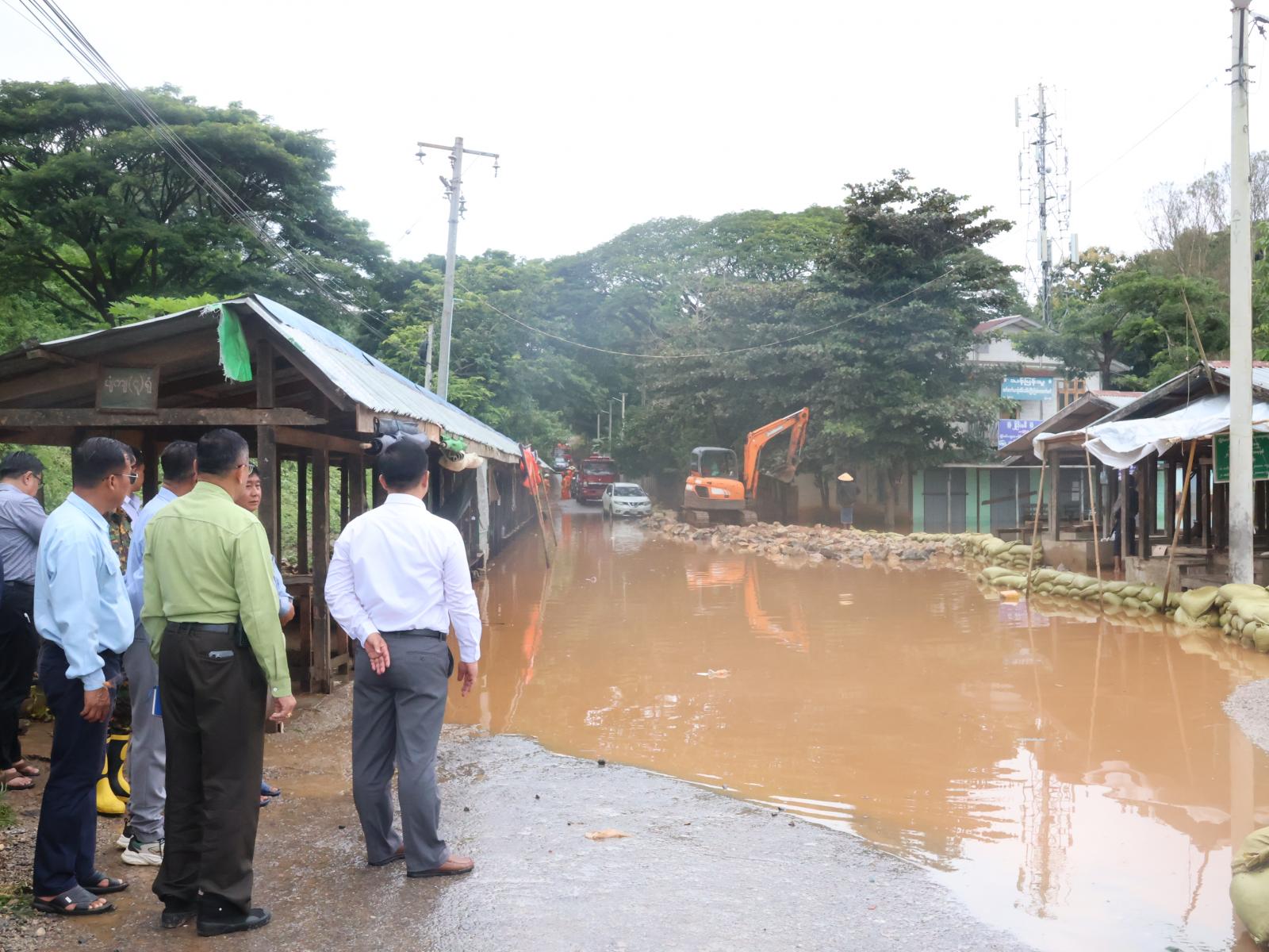 ထို့နောက် မြို့နယ်အတွင်း သီရိမင်္ဂလာဈေးအတွင်း ရေကြီးရေလျှံဖြစ်ပေါ်နေမှုအခြေ အနေများအား လှည့်လည်ကြည့်ရှုကာ ဝန်ကြီးချုပ်က “ပြည်သူများ စိတ်အေး ချမ်းသာယာစွာ ဝယ်ယူစားသုံးနိုင်ရေးအတွက် ဈေးအား နေ့စဉ်ဖွင့်လှစ်ပေးနိုင်ရေး၊ ဈေးပတ်ဝန်းကျင်တွင် ရေကြီးရေလျှံမှုအတွက် ရေထိန်းနေရာများပြုလုပ်ရေးနှင့် အဝင်အထွက်လမ်းများ ကောင်းမွန်ရေး ပြုပြင်သွားရန်”တို့ကို မှာကြားသည်။ ဆက်လက်၍ ကန္ဒရဝတီတံတား ရေကျော်နေမှုနှင့် ရပ်ကွက်များအတွင်း ရေဝင်ရောက်မှုအခြေအနေများအား လှည့်လည်ကြည့်ရှုပြီး ဝန်ကြီးချုပ်က “ပြည်သူများ ရေလွတ်ရာလမ်းများမှ အဆင်ပြေစွာသွားလာနိုင်ရေး လမ်းညွှန်အမှတ်အသားများ ဆောင်ရွက်ပေးရန်” တို့ကို မှာကြားသည်။