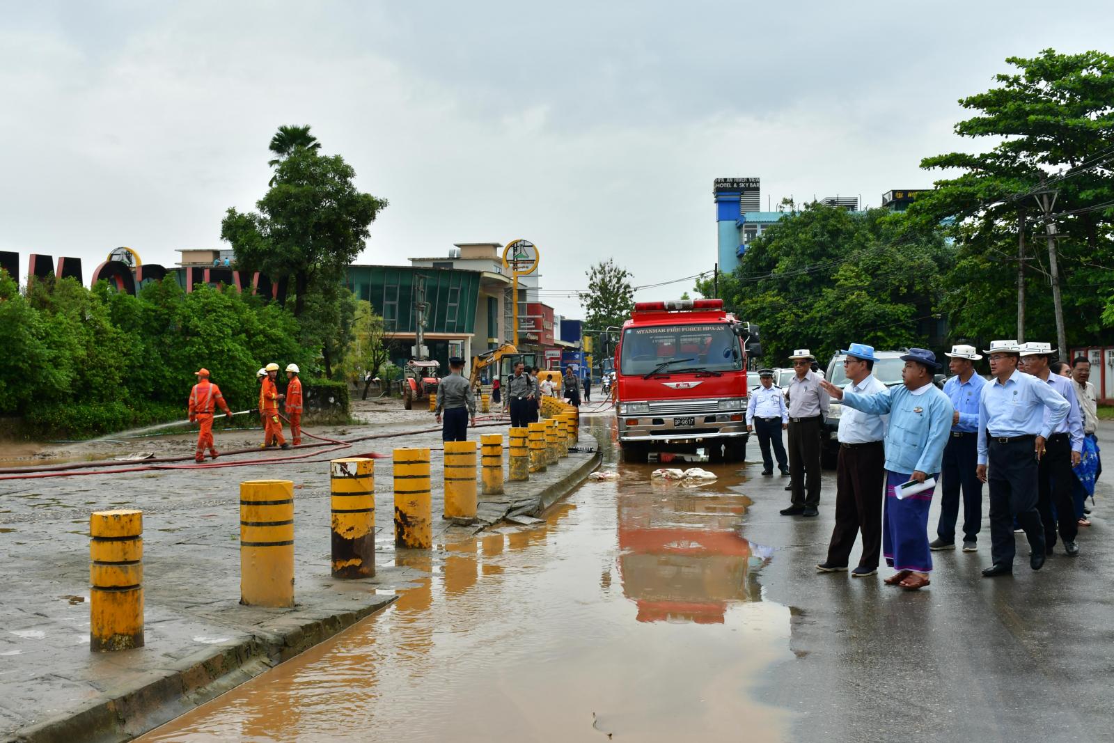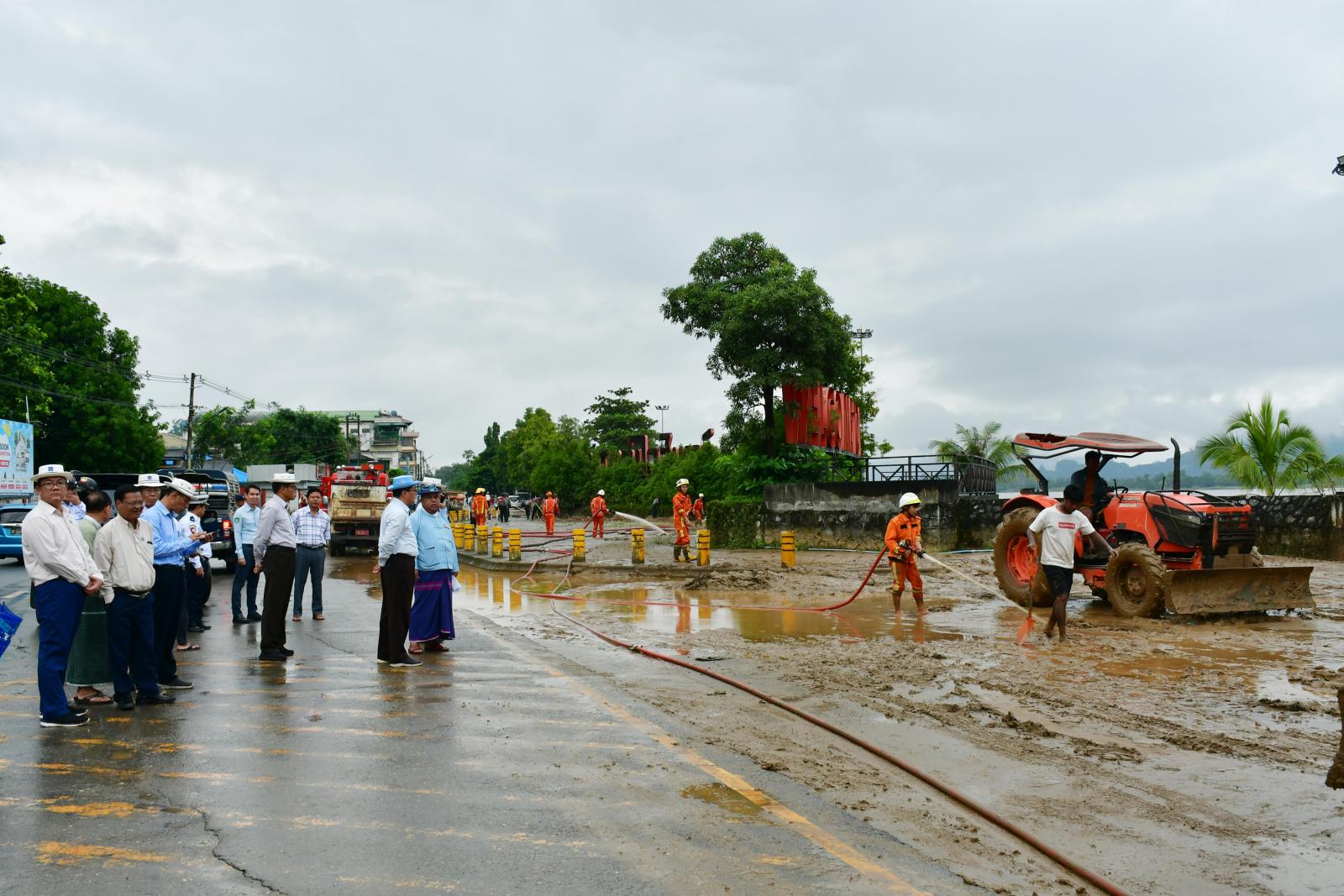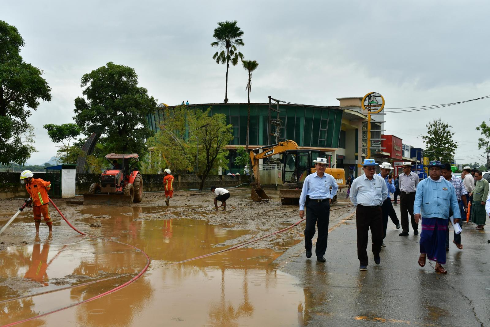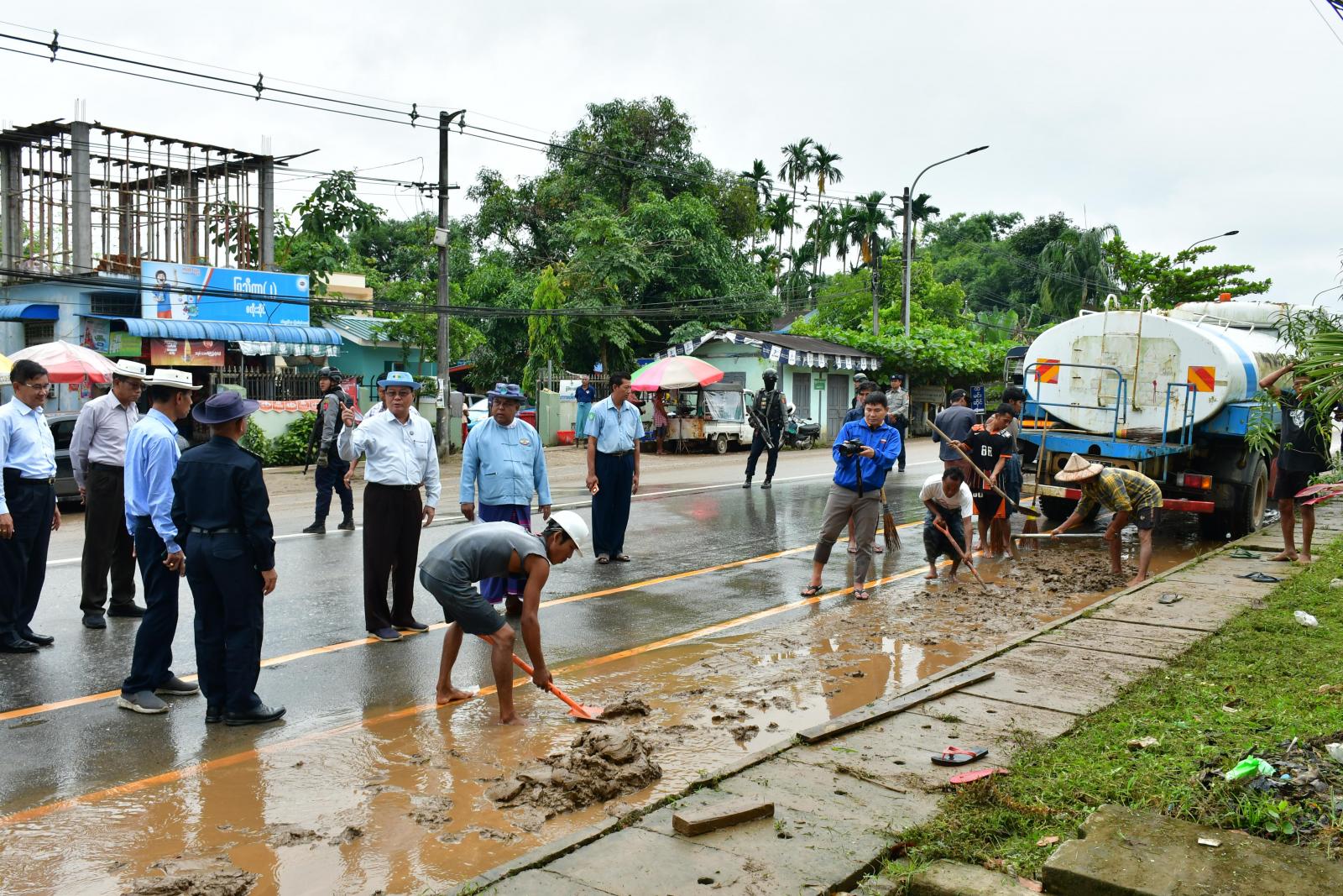 ဦးစွာ ပြည်နယ်ဝန်ကြီးချုပ်နှင့် တာဝန်ရှိသူများသည် ဘားအံမြို့၊ ကမ်းနားလမ်းတစ်လျှောက်နှင့် ဘားအံ-ထုံး အိုင်ကားလမ်းမကြီးတွင် ပြည်နယ်စည်ပင်သာယာရေးအဖွဲ့၏ ဦးဆောင်မှုဖြင့် ရဲတပ်ဖွဲ့ဝင်များ၊ မီးသတ်တပ်ဖွဲ့ဝင်များ၊ စည်ပင်သာယာရေးအဖွဲ့မှဝန်ထမ်းများ၊ ဌာနဆိုင်ရာများနှင့် ရပ်ကွက်နေ ပြည်သူများ ပူးပေါင်း၍ ဌာနဆိုင်ရာများရှိ ယာဉ်၊ ယန္တရားများနှင့် စက်ကိရိယာများ အသုံးပြုပြီး ရေကြီးရေလျှံမှု ဖြစ်ပွားပြီးချိန်၊ ရေများပြန်လည် ကျဆင်းချိန်တွင် တင်ကျန်ရစ်ခဲ့သည့် သဲနှုန်းများအားဖယ်ရှားရှင်းလင်းခြင်း၊ မီးသတ်ပိုက်များဖြင့် ဆေးကြောသန့်စင်ခြင်း အစရှိသည့် စုပေါင်းသန့်ရှင်းရေးလုပ်ငန်းဆောင်ရွက်နေမှုများကို လည့်လည်ကြည့်ရှုအားပေးပြီး ပြည်နယ်၏ မြို့တော်ဖြစ်သည့်အတွက် မြို့တော်အင်္ဂါရပ်များနှင့်အညီ သန့်ရှင်းသာယာလှပသော Green City, Clean City ဖြစ်စေရေး ကြိုးပမ်းဆောင်ရွက်ကြရန် တာဝန်ရှိသူများအား မှာကြားသည်။