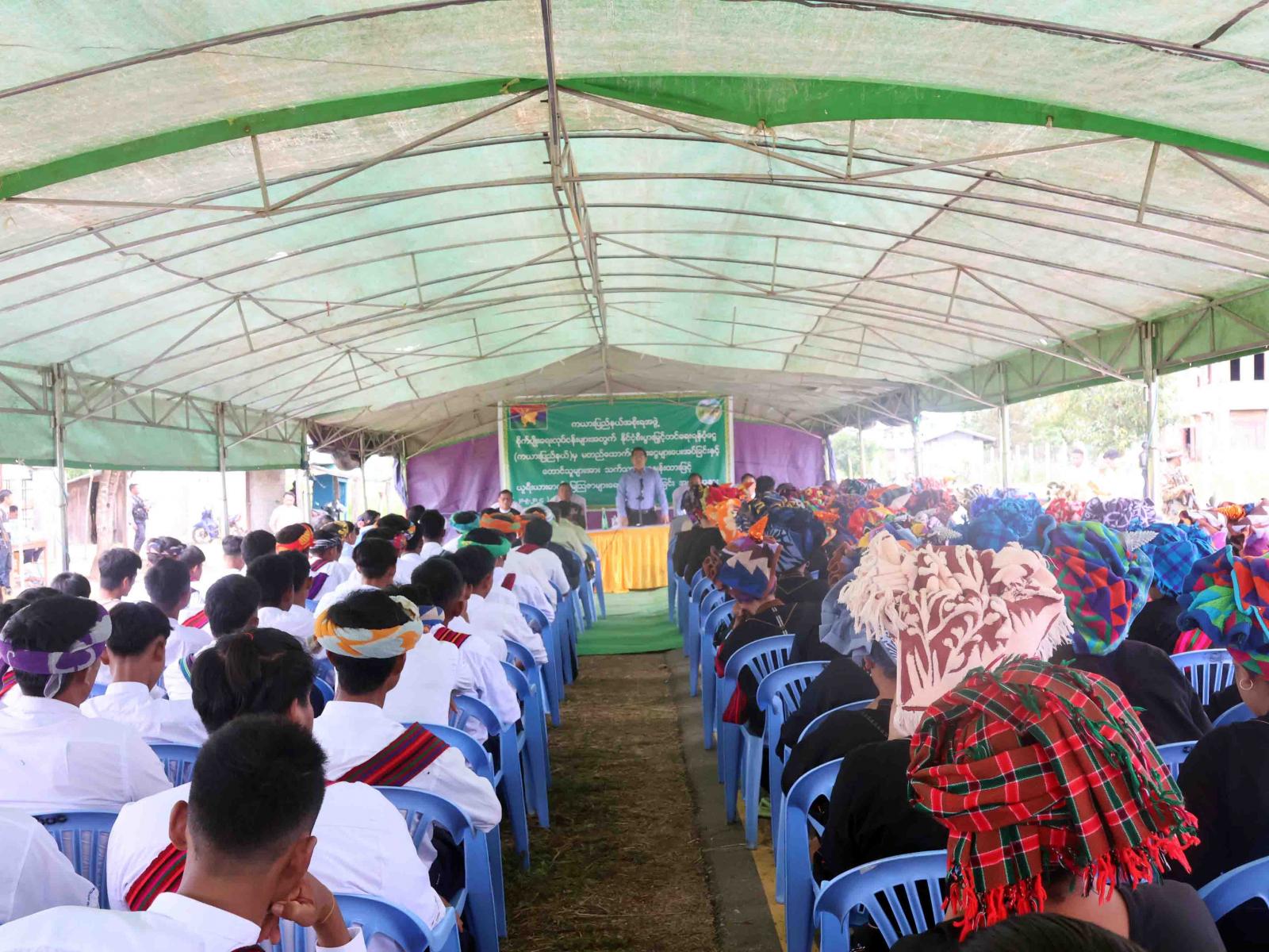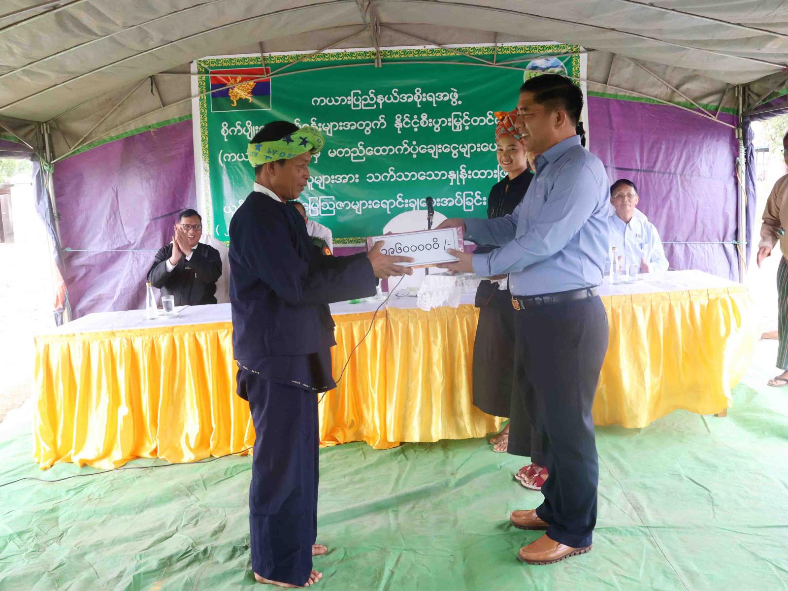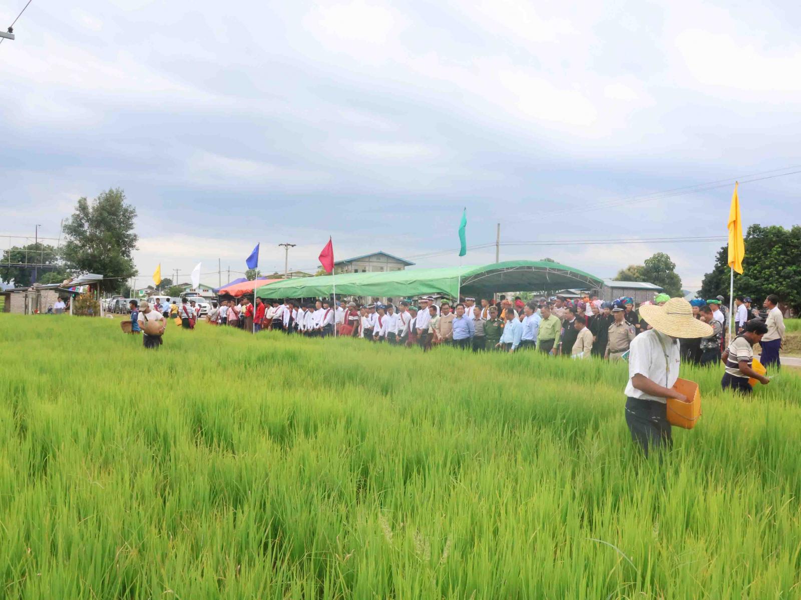 ထို့နောက် ပြည်နယ်စိုက်ပျိုးရေးဦးစီးဌာန၊ ပြည်နယ်ဦးစီးမှူးဦးသန်းလှိုင်က စိုက်ပျိုးရေးဆိုင်ရာကိစ္စရပ်များအား ရှင်းလင်းတင်ပြသည်။ နိုင်ငံ့စီးပွားမြှင့်တင်ရေးရန်ပုံငွေမှ လွိုင်ကော်မြို့နယ် လွယ်ထွဲကျေးရွာအုပ်စုမှ အစေ့ထုတ်ပြောင်းစိုက်ပျိုးသူအစုအဖွဲ့အား ထောက်ပံ့ချေးငွေနှင့် ပဒါးညေးကျေးရွာအုပ်စုမှ တောင်သူများကို ယူရီးယားမြေဩဇာများ ရောင်းချ၊ ထောက်ပံ့ပေးအပ်ခြင်းဆက်လက်ကျင်းပရာ ပြည်နယ်ဝန်ကြီးချုပ်ဦးဇော်မျိုးတင်နှင့် ပြည်နယ်အစိုးရအဖွဲ့ဝင်များကပေးအပ်ကြပြီး တောင်သူအစုအဖွဲ့ ကိုယ်စားလှယ်အသီးသီးက လက်ခံရယူခဲ့ကြသည်။ ယင်းနောက် တက်ရောက်လာသော ဒေသခံတောင်သူများနှင့် ရင်းရင်းနှီးနှီးနှုတ်ဆက်စကားပြောကြားခဲ့ပြီး စိုက်ပျိုးရေးဦးစီးဌာန၏ မိုးစပါးစုပေါင်းမြေဩဇာကြဲပက်ခြင်းသရုပ်ပြမှုအား ကြည့်ရှုအားပေးခဲ့သည်။ ယခုပေးအပ်ပွဲသည် နဝမအကြိမ်မြောက်ဖြစ်ပြီး အစုအဖွဲ့(၅)ဖွဲ့ရှိ တောင်သူ(၄၀)ဦး၏ အစေ့ထုတ်ပြောင်း (၈၈၁)ဧကအတွက် ငွေကျပ်(၁၇၆.၂)သန်းနှင့် သက်သာသောနှုန်းထားဖြင့် တောင်သူတစ်ဦးလျှင် ယူရီးယားမြေဩဇာတစ်အိတ်နှုန်းဖြင့် တောင်သူ(၂၀၀)ဦးအတွက် အိတ်(၂၀၀) အား ထောက်ပံ့ပေးအပ်ခဲ့သည်။
