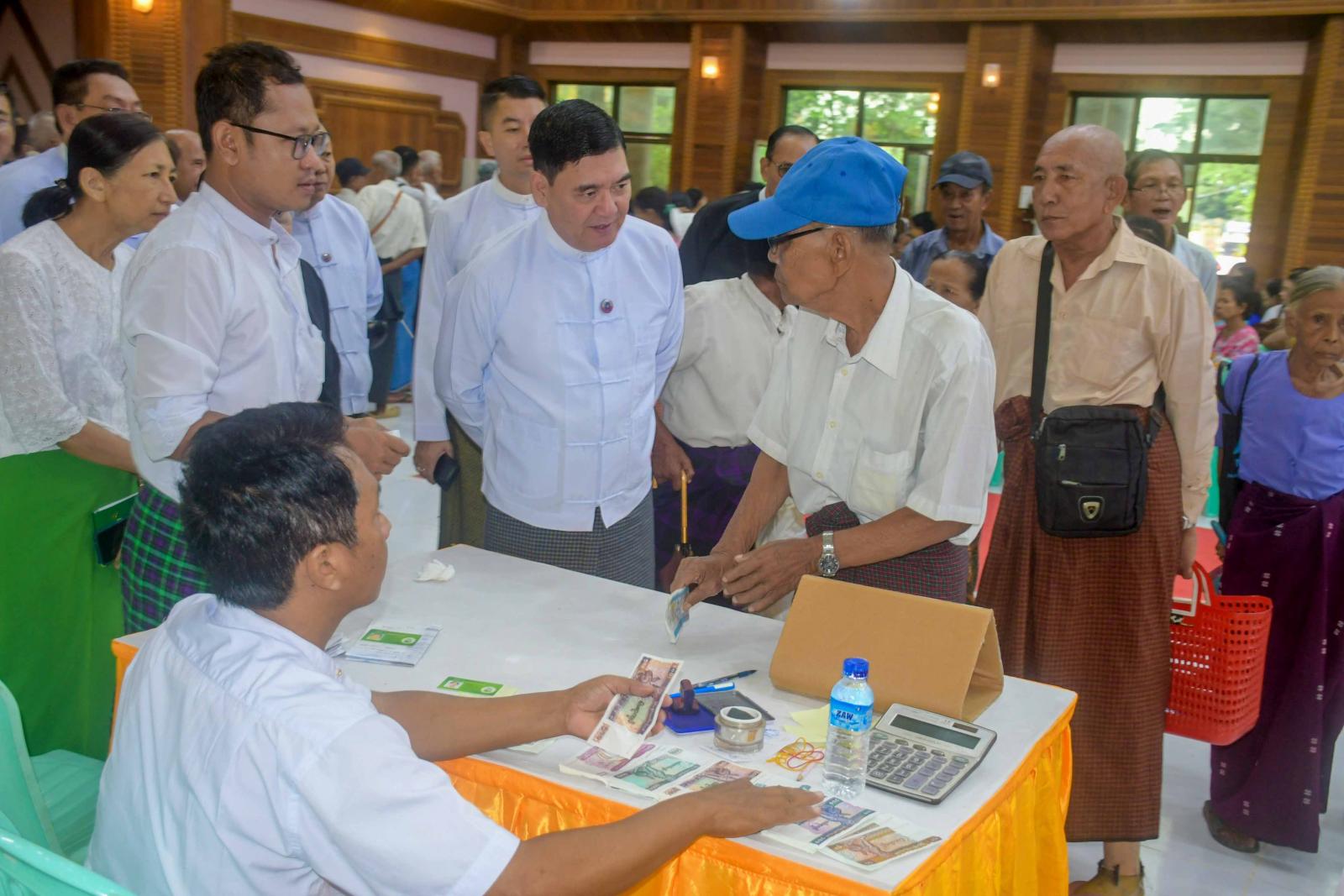ဦးစွာရခိုင်ပြည်နယ်ဝန်ကြီးချုပ်နှင့်အဖွဲ့သည် အငြိမ်းစားဝန်ထမ်းများအား မြန်မာ့စီးပွားရေးဘဏ် ဝန်ထမ်းများက ပင်စင်လစာထုတ်ပေးနိုင်ရန်အတွက် လိုအပ်သောစိစစ်မှုများ ဆောင်ရွက်နေမှုကို လှည့်လည်ကြည့်ရှုအားပေးပြီး အငြိမ်းစားဝန်ထမ်းများအား ရင်းရင်းနှီးနှီးလိုက်လံနှုတ်ဆက်ကြသည်။ ဆက်လက်၍ ပြည်နယ်ဝန်ကြီးချုပ်နှင့်အဖွဲ့သည် အငြိမ်းစားဝန်ထမ်းများအား ပင်စင်လစာထုတ်ပေး နေမှု၊ စစ်တွေမြို့၊ ခုတင်(၅၀၀)ဆံ့ အထွေထွေရောဂါကုဆေးရုံကြီးမှ အထူးကုဆရာဝန်ကြီးများ၊ ဆရာဝန်၊ သူနာပြုများက ကျန်းမာရေးစောင့်ရှောက်မှုပေးခြင်းများ ဆောင်ရွက်နေမှုတို့ကို လှည့်လည် ကြည့်ရှုအားပေးကြပြီး လိုအပ်သည်များကို တာဝန်ရှိသူများနှင့် ပေါင်းစပ်ညှိနှိုင်းပေးကြသည်။ ထို့နောက် ပြည်နယ်ဝန်ကြီးချုပ်နှင့် တာဝန်ရှိသူများက ရခိုင်ပြည်နယ် အစိုးရအဖွဲ့မှ ထောက်ပံ့သည့် ဆန်နှင့်စားသောက်ဖွယ်ရာများ၊ ဆေးဝါးများကို အငြိမ်းစားဝန်ထမ်းများအားထောက်ပံ့ ပေးအပ်ကြ သည်။