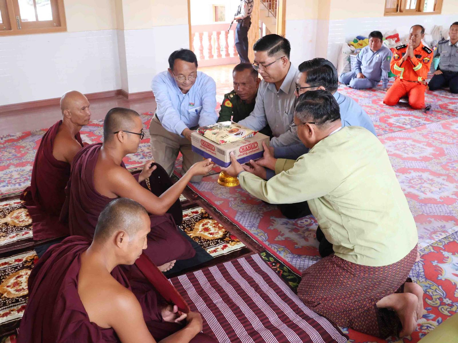 ကယားပြည်နယ်အစိုးရအဖွဲ့က လွိုင်ကော်မြို့နယ်အတွင်း ဘီလူးချောင်းရေမြင့်တက်မှုကြောင့် ရပ်ကွက်များအတွင်း ရေကြီးရေလျှံမှုများ ဖြစ်ပွားခဲ့သည့်နည်းတူ ဘုန်းတော်ကြီးကျောင်းများလည်း ရေကြီးရေလျှံမှုများဖြစ်ပေါ်သဖြင့် ယမန်နေ့ နံနက်ပိုင်းက ပြည်နယ်ဝန်ကြီးချုပ် ဦးဇော်မျိုးတင်၊ ပြည်နယ်အစိုးရအဖွဲ့ဝင်များနှင့် တာဝန်ရှိသူများသည် ရှမ်းပိုင်းရပ်ကွက်ရှိ ရွှေကျောင်းပရိယတ္တိ စာသင်တိုက်သို့ ရောက်ရှိပြီး ဆရာတော်များထံ သာသနာရေးဆိုင်ရာများ လျှောက်ထားပြီး ဆွမ်းဆန်တော်၊ ဆီနှင့် လှူဖွယ်ဝတ္ထုပစ္စည်းများ ဆက်ကပ်လှူဒါန်းခဲ့သည်။ ဝန်ကြီးချုပ်က “သံဃာတော်များအတွက် ဆွမ်းနှင့် ဆွမ်းဟင်းများ ချက်ပြုတ်ရာတွင် အဆင်ပြေစေရေးအတွက် လိုအပ်သည့် ထင်း၊ မီးသွေး၊ မီးဖိုများ၊ ရေသန့်များနှင့် စက်သုံးဆီများ လှူဒါန်းသွားရန်၊ ကျောင်းဝေယျာဝစ္စကိစ္စရပ်များ ဆောင်ရွက်ရန်အတွက် လှေတစ်စီးအား စီစဉ်ထားရန်နှင့် ရေများပြန်လည်ကျဆင်းပါက ကျောင်းဝန်းအတွင်း စုပေါင်းသန့်ရှင်းရေးဆောင်ရွက်ပေးရန်” တာဝန်ရှိသူများအား မှာကြားခဲ့သည်။
