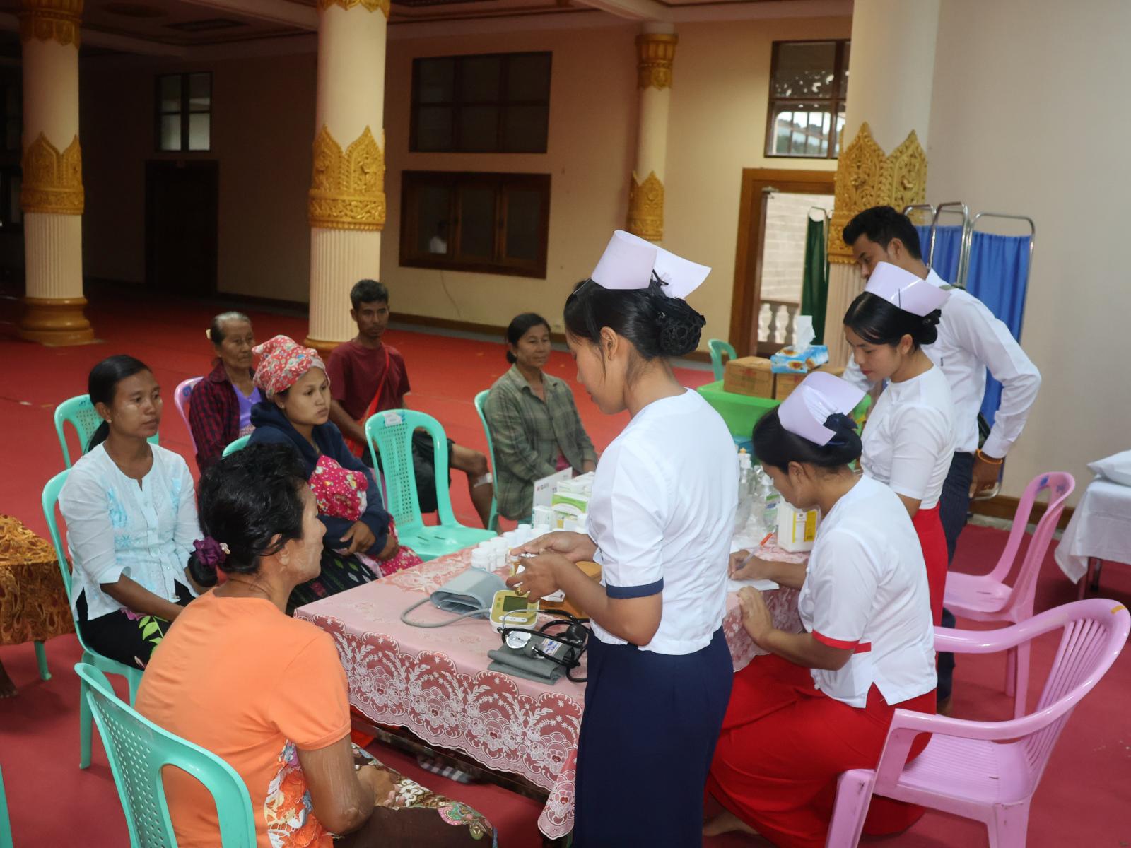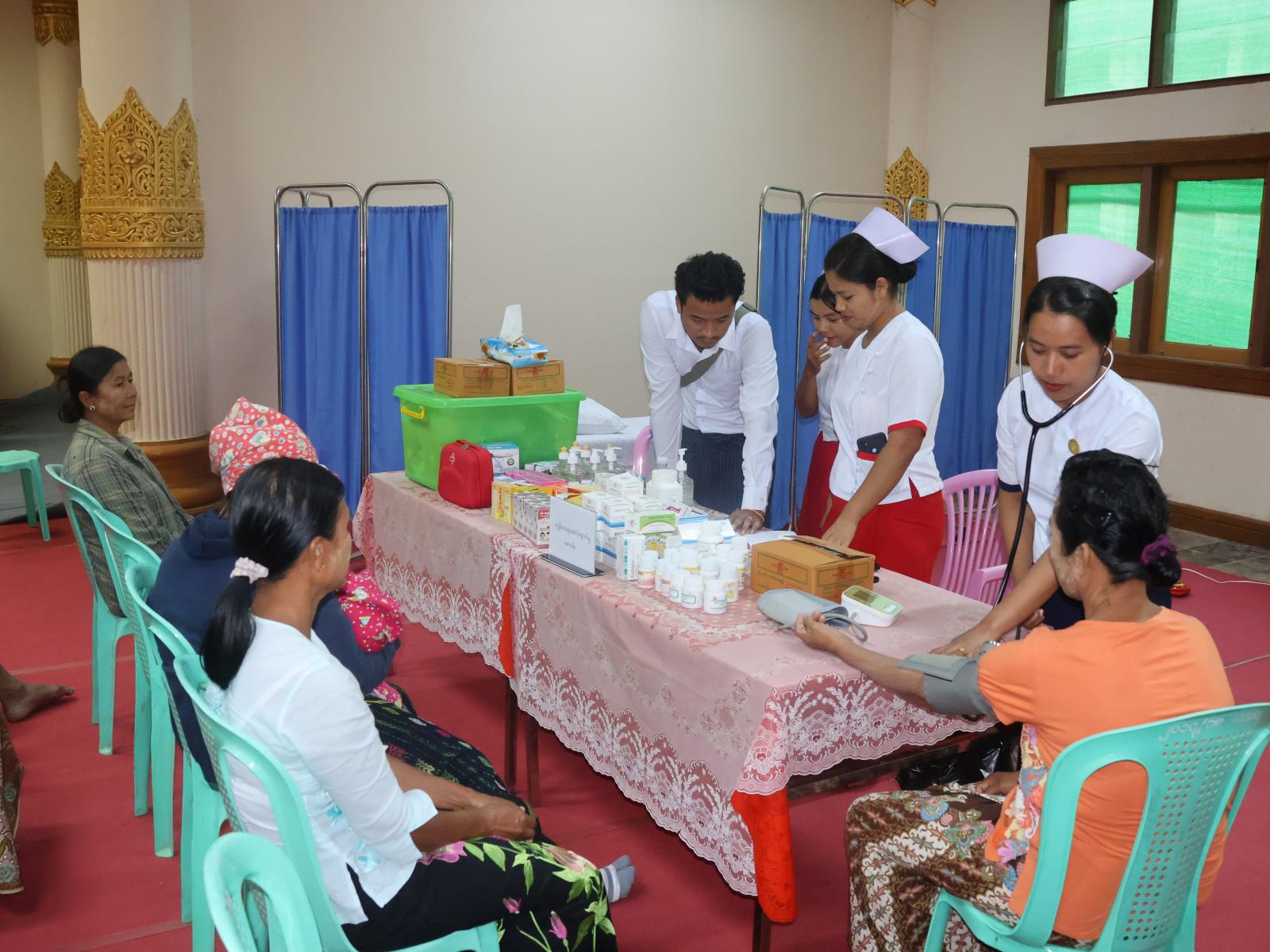 အဆိုပါစခန်းများတွင် ရေဘေးသင့်ပြည်သူများ၏ နေ့စဉ်စားသောက်ရေးအပြင် ကျန်းမာရေးစောင့်ရှောက်မှုများလည်း ပေးလျက်ရှိရာ ပြည်နယ်ပြည်သူ့ကျန်းမာရေးဦးစီးဌာနမှူး ဒေါက်တာစည်သူက “ပြည်သူများကူးစက်ရောဂါ မဖြစ်ပွားစေရေး ကြိုတင်ကာကွယ်ရေးလုပ်ငန်းများ ဆောင်ရွက်ခြင်း၊ အမှိုက်စွန့်ပစ်စနစ်နှင့် ရေစီးရေလာကောင်းမွန်ရေး၊ သန့်စင်ခန်းများ စနစ်တကျဖြစ်စေရေး နေ့စဉ်စစ်ဆေးခြင်း၊ နေ့စဉ်ကျန်းမာရေးစောင့်ရှောက်မှုများ ပေးနေသည့်အပြင် ပညာပေးဟောပြောခြင်းနှင့် အရေးပေါ်များ ရှိလာပါက တာဝန်ကျဝန်ထမ်းအသင့်ထားရှိကြောင်း” ပြောကြားခဲ့သည်။