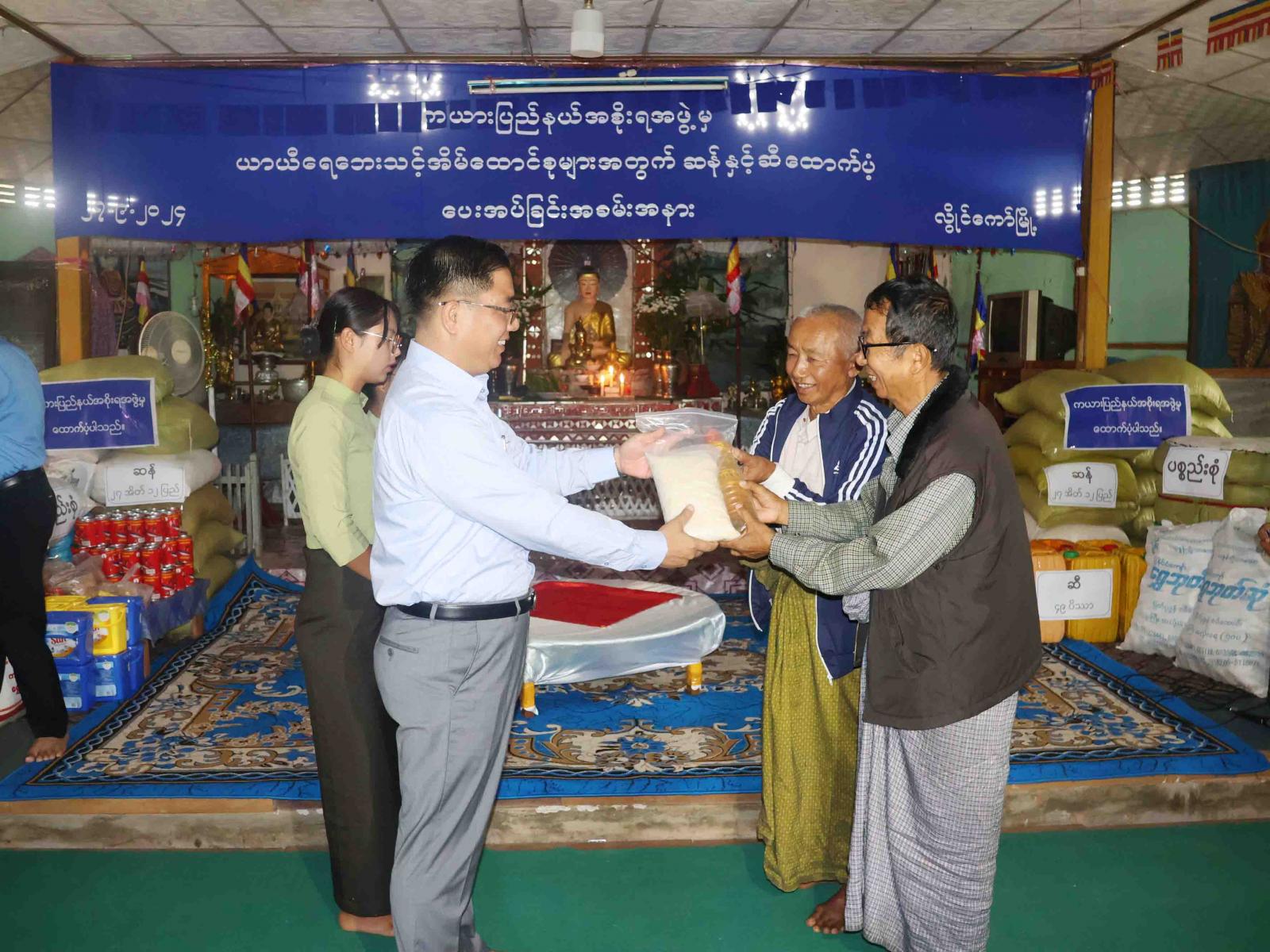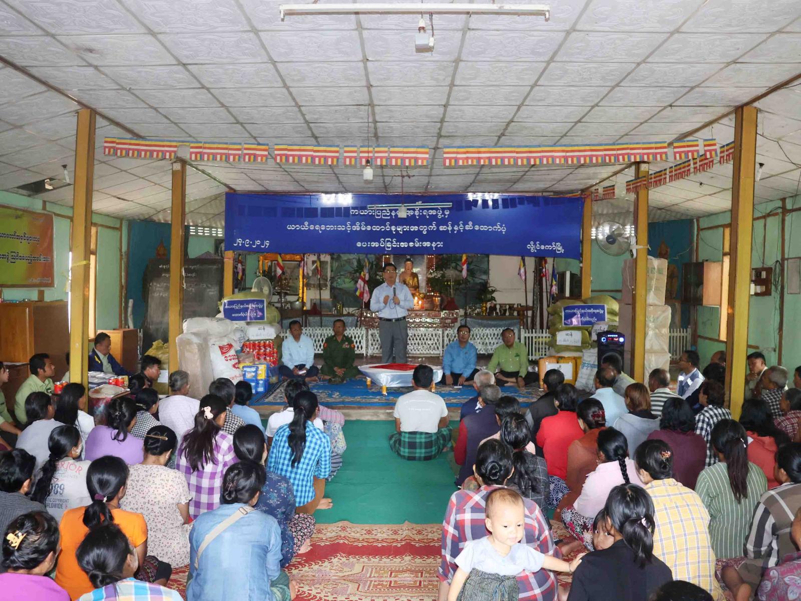 ဆက်လက်၍ ပြည်နယ်ဝန်ကြီးချုပ်နှင့်တာဝန်ရှိသူများသည် ပုဗ္ဗာရုံပရိယတ္တိစာသင်တိုက်သို့ ရောက်ရှိပြီး ပြည်နယ်ဝန်ကြီးချုပ်က “လှူဒါန်းထောက်ပံ့သည့် ပစ္စည်းများအားလုံးကို ရေဘေးသင့်ပြည်သူများလက်ဝယ်သို့ မျှမျှတတရရှိစေရန် စီမံဆောင်ရွက်ပေးလျက်ရှိကြောင်း၊ ပြည်နယ်အစိုးရအဖွဲ့အနေဖြင့် ရေစတင်ဝင်ရောက်နေ့မှစ၍ ရေဘေးကြိုတင်ကာကွယ်ရေးနှင့် ကယ်ဆယ်ရေးလုပ်ငန်းများ၊ ကူညီထောက်ပံ့ရေးလုပ်ငန်းများကို စဉ်ဆက်မပြတ် ဆောင်ရွက်ပေးလျက်ရှိပြီး ယနေ့အထိ လူသေဆုံးထိခိုက်မှုများမရှိခဲ့ကြောင်း” စသည်ဖြင့် ပြောကြားခဲ့ကာ မင်္ဂလာ၊ နမ့်ကွတ်၊ ဒေါနိုးကူးရပ်ကွက်နှင့် မှုံပြာကျေးရွာရှိ ရေဘေးသင့် အိမ်ထောင်စု (၂၄) စု၊ လူဦးရေ(၅၄)ဦးအား ဆန်၊ ဆီ၊ အဝတ်အထည်၊ စားသောက်ကုန်နှင့် လူသုံးကုန်ပစ္စည်းများ ထောက်ပံ့ပေးအပ်၍ ပြည်သူများက လိုအပ်ချက်များတင်ပြခဲ့ရာ တင်ပြချက်များအပေါ် ပြည်နယ်ဝန်ကြီးချုပ်က တာဝန်ရှိသူများနှင့် ပေါင်းစပ်ညှိနှိုင်းပေးခဲ့သည်။ ထို့နောက် ပုဗ္ဗာရုံပရိယတ္တိစာသင်တိုက်ရှိ ဆရာတော်၊ သံဃာတော်များအတွက် ဆန် (၅) အိတ် နှင့်ဆီ (၁၀) ပိဿာ လှူဒါန်းပေးခဲ့သည်။