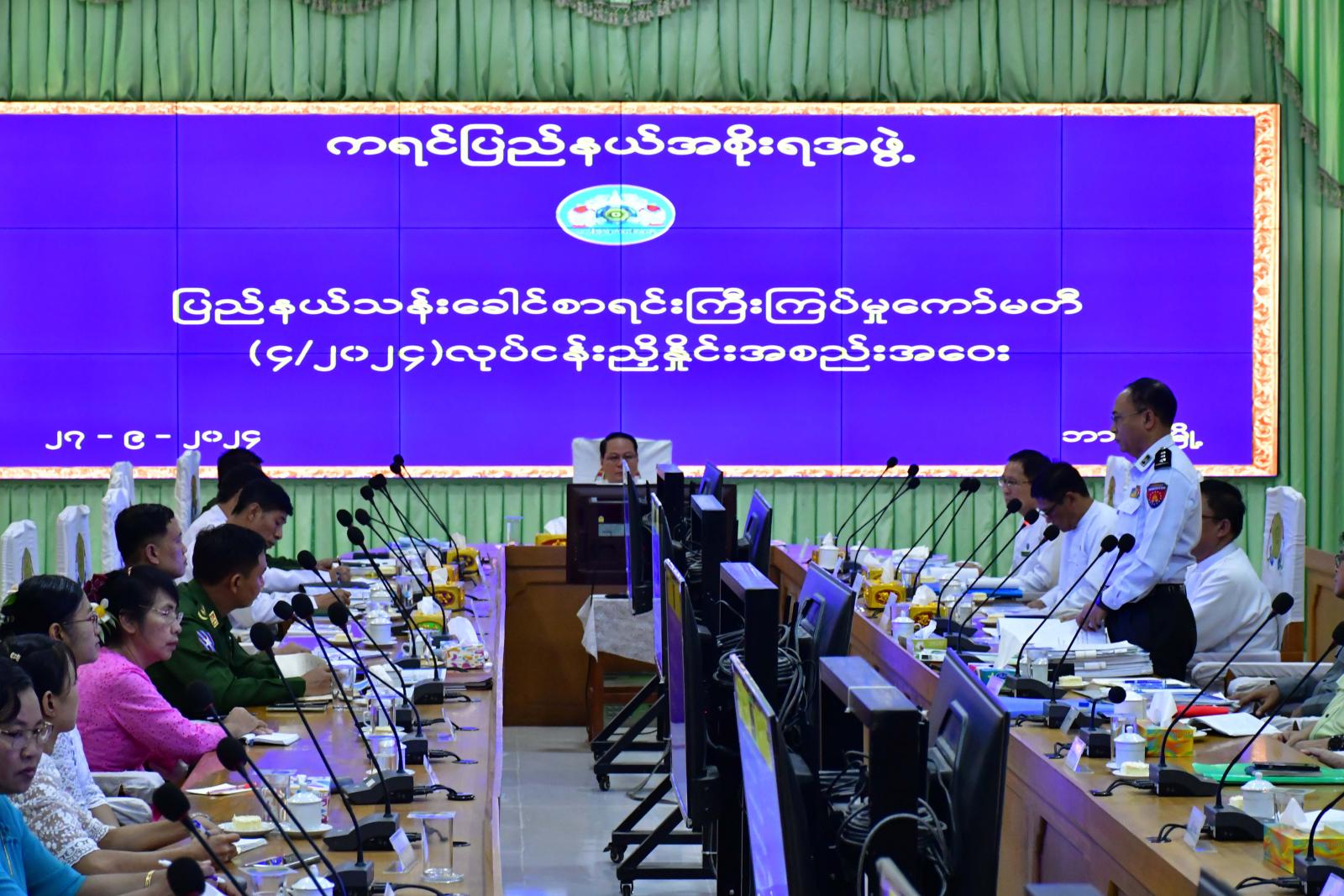ထို့နောက် အရှေ့တောင်တိုင်းစစ်ဌာနချုပ် ဒုတိယတိုင်းမှူးက သက်ဆိုင်ရာနယ်မြေဒေသများအလိုက် တာဝန် ခွဲဝေချထားပေးမှုအခြေအနေများကို ရှင်းလင်းပြောကြားပြီး ပြည်နယ်သန်းခေါင်စာရင်း ကြီးကြပ်မှုကော်မတီ အတွင်းရေးမှူး ပြည်နယ်လူဝင်မှုကြီးကြပ်ရေးနှင့်ပြည်သူ့အင်အားဝန်ကြီးဌာနမှ ပြည်နယ်ဦးစီးမှူး ဦးကျော်မြင့်က သန်းခေါင် စာရင်းကောက်ယူရေးဆိုင်ရာ လုပ်ငန်းများနှင့် ပတ်သက်၍ ရှင်းလင်းတင်ပြကာ ပြည်နယ်သန်းခေါင်စာရင်းကြီးကြပ်မှု ကော်မတီအဖွဲ့ဝင်များက သက် ဆိုင်ရာကဏ္ဍများအလိုက် ရှင်းလင်းတင်ပြကြသည်။