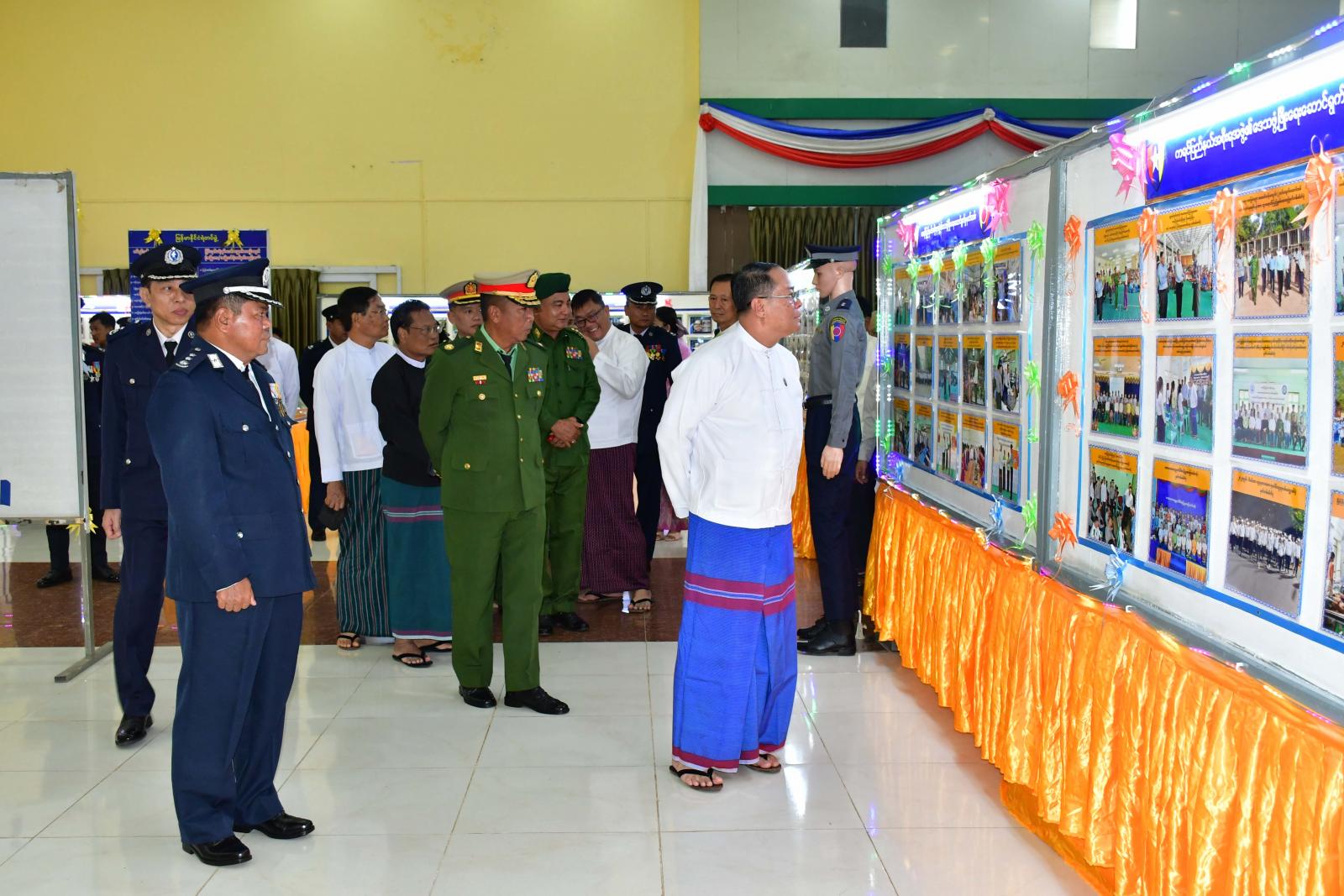 ထို့နောက် ပြည်နယ်ဝန်ကြီးချုပ်နှင့်တာဝန်ရှိသူများသည် ခင်းကျင်းပြသထားသော ပြည်နယ်အစိုးရအဖွဲ့၏ ဒေသဖွံ့ဖြိုးရေးဆိုင်ရာလုပ်ငန်းဆောင်ရွက်မှုမှတ်တမ်းဓာတ်ပုံများ၊ ရဲတပ်ဖွဲ့၏လုပ်ငန်း ဆောင်ရွက်မှုမှတ်တမ်းဓာတ်ပုံများကို လှည့်လည်ကြည့်ရှုအားပေးခဲ့ကြကြောင်း သိရသည်။