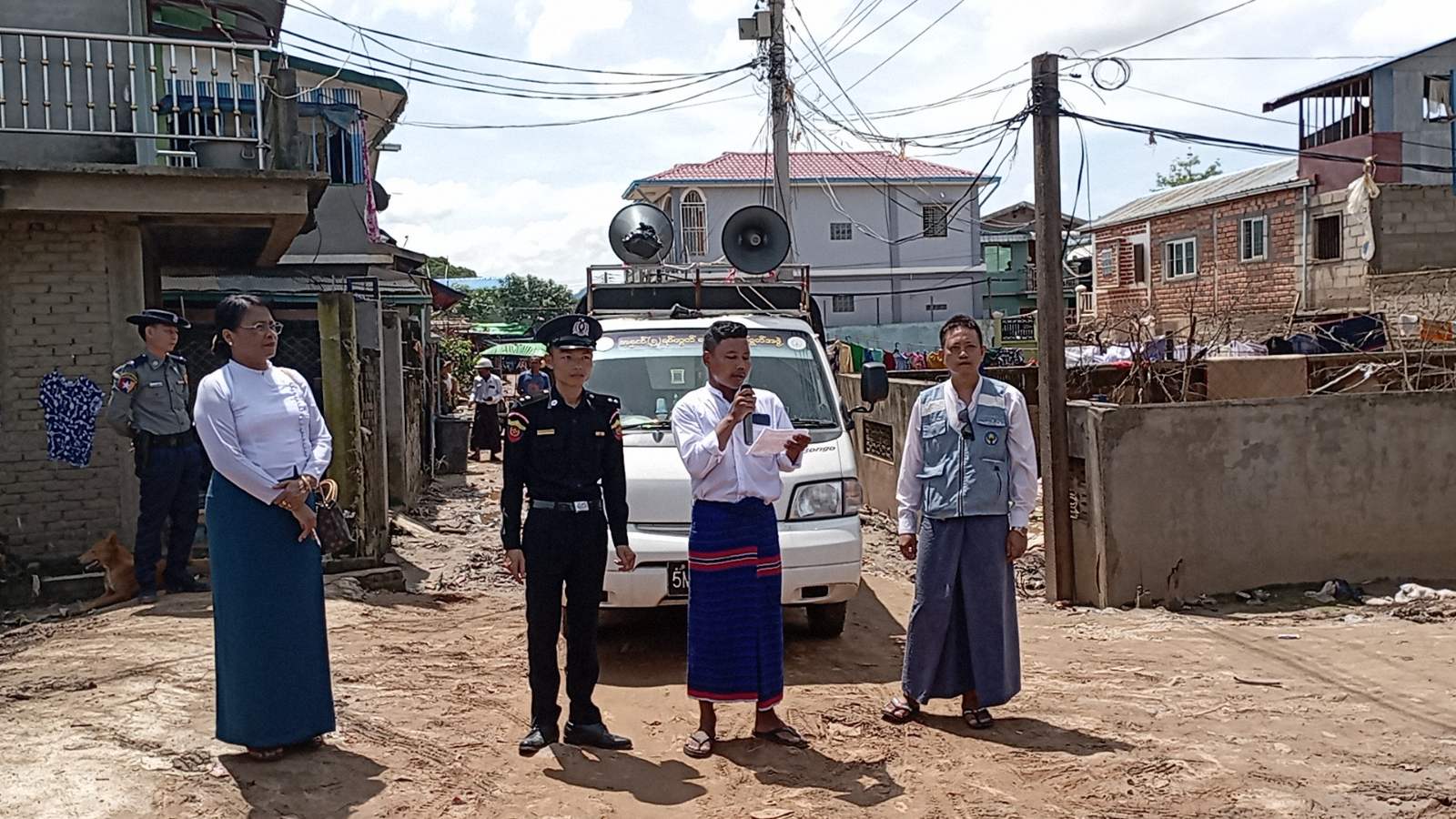 ထို့သို့အသိပေးနှိုးဆော်ရာတွင် ခရိုင်ဘေးအန္တရာယ်ဆိုင်ရာစီမံခန့်ခွဲမှုဦးစီးဌာနမှ ဒုတိယညွှန်ကြားရေးမှူး ဦးဉာဏ်မြင့် ဦးဆောင်သော ပူးပေါင်းအဖွဲ့တို့သည် မိုးလေဝသနှင့် ဇလဗေဒညွှန်ကြားမှုဦးစီးဌာန၏ ထုတ်ပြန်ချက်အရ သောင်ရင်းမြစ်ရေသည် စိုးရိမ်ရေအမှတ် ၉၆၃ စင်တီမီတာသို့ ကျော်လွန်ရောက်ရှိနေပြီးဖြစ်၍ မြေနိမ့်ပိုင်းနှင့် မြစ်ကမ်းပါးနေရာများသို့ ရေများဝင်ရောက်ပါက လူနှင့်တိရိစ္ဆာန်များ၊ ပစ္စည်းများ ထိခိုက်ပျက်စီးဆုံးရှုံးမှုမဖြစ်ပေါ်စေရန် သတိပြုလိုက်နာရမည့် အချက်များနှင့် သက်ဆိုင်ရာ ယာယီရေဘေးကယ်ဆယ်ရေးစခန်းများသို့ ရွှေ့ပြောင်းနိုင်ရေး ကြိုတင်ပြင်ဆင်ဆောင်ရွက်ထားရန် ရပ်ကွက်အတွင်းရှိ လူစည်ကားရာနေရာများ၊ လမ်းဆုံ/လမ်းခွများနှင့် လမ်းမကြီးများတစ်လျှောက်တို့၌ အသိပေးနှိုးဆော်ခြင်းများ ဆောင်ရွက်ခဲ့ကြောင်း သိရသည်။