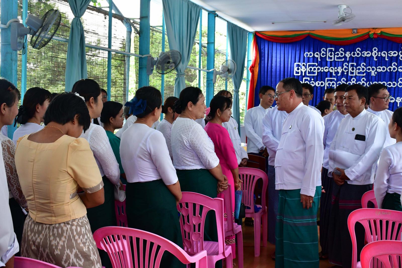 သင်တန်းဖွင့်ပွဲတွင် ကရင်ပြည်နယ်ဝန်ကြီးချုပ်ဦးစောမြင့်ဦး တက်ရောက်အမှာစကားပြောကြားပြီး ပြန်ကြားရေးနှင့်ပြည်သူ့ဆက်ဆံရေးဦးစီးဌာန ပြည်နယ်ဦးစီးမှူးဦးမောင်မောင်က သင်တန်းဖွင့်လှစ်ရခြင်း၏ရည်ရွယ်ချက်များကို ရှင်းလင်းတင်ပြကာ ပြည်နယ်ဝန်ကြီးချုပ်က သင်တန်းအတွက်ထောက်ပံ့ငွေကျပ် ၂၂၁၉၀၀ဝိ/- (နှစ်ဆယ့်နှစ်သိန်း တစ်သောင်းကိုးထောင်ကျပ်) ကို ပြည်နယ်ဦးစီးမှူးထံ ထောက်ပံ့ပေးအပ်သည်။