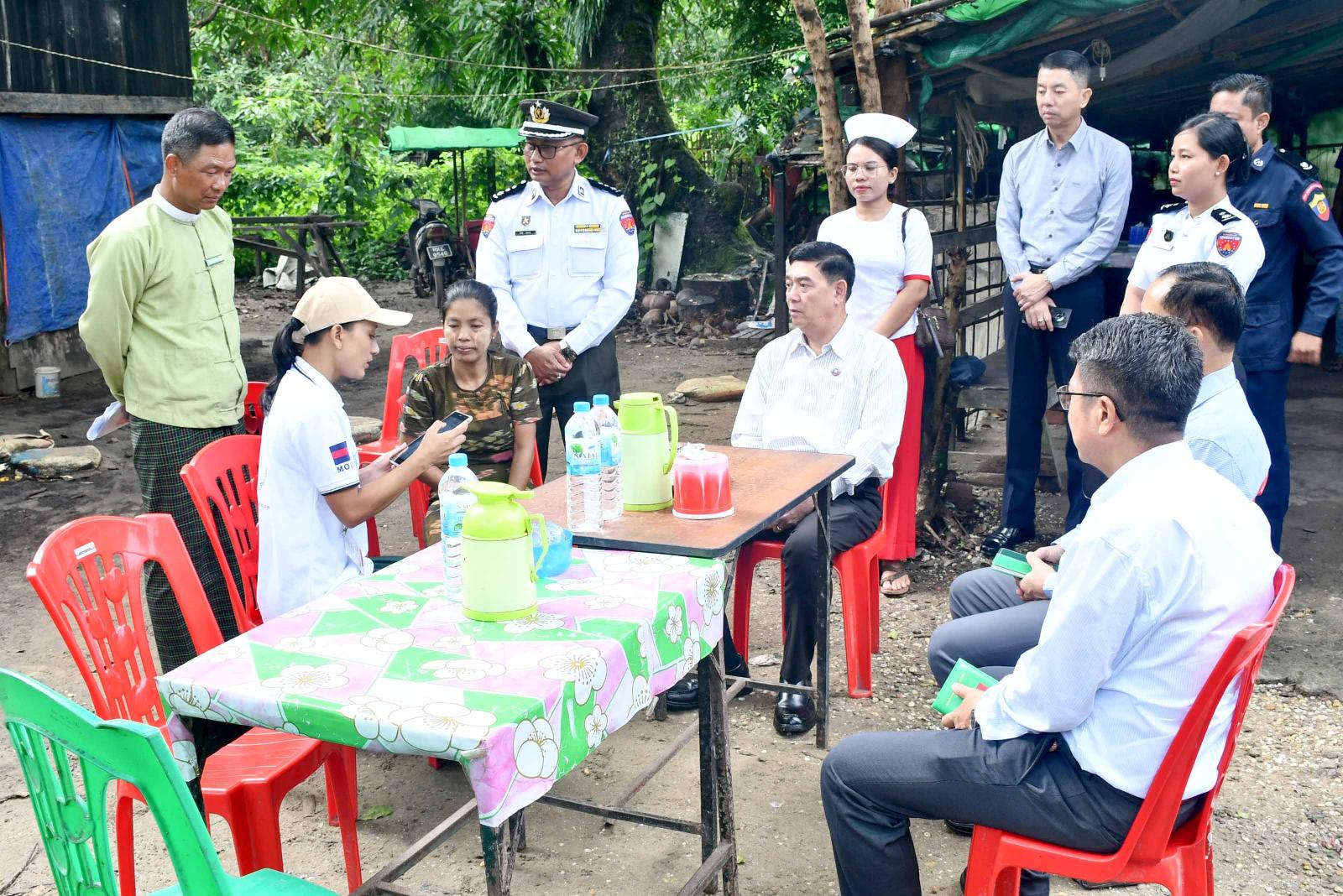 ဆက်လက်၍ ပြည်နယ်ဝန်ကြီးချုပ်နှင့်အဖွဲ့သည် အဆိုပါရိပ်သာ၌ ကျောက်ဖြူခရိုင်နှင့် မြို့နယ်တရားမဝင်ကုန်သွယ်မှုတိုက်ဖျက်ရေးအဖွဲ့ဥက္ကဋ္ဌနှင့်အဖွဲ့ဝင်များအား တွေ့ဆုံသည်။ ဦးစွာ ကျောက်ဖြူခရိုင်တရားမဝင်ကုန်သွယ်မှုတိုက်ဖျက်ရေးအဖွဲ့ဥက္ကဋ္ဌ၊ ခရိုင်စီမံအုပ်ချုပ်ရေးအဖွဲ့ဥက္ကဋ္ဌ ဦးနေမင်းသူက ကုန်စည်စီးဆင်းမှုမြန်ဆန်စေရေး၊ ကုန်ဈေးနှုန်းတည်ငြိမ်ရေးနှင့် မလိုလားအပ်သော နေရာများသို့ မရောက်ရှိစေရေးအတွက် ဆောင်ရွက်နေမှုများကို ရှင်းလင်းတင်ပြသည်။