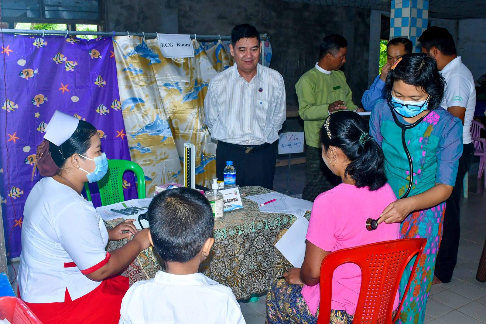 ထို့နောက် ပြည်နယ်ဝန်ကြီးချုပ်နှင့်အဖွဲ့သည် ဂုံးချွိန်ကျေးရွာဘုန်းတော်ကြီးကျောင်းသို့ သွားရောက်ပြီး ကျောင်းထိုင်ဆရာတော်အား ဖူးမြော်ကြည်ညိုကာ လှူဖွယ်ဝတ္ထုများဆက်ကပ်လှူဒါန်းကြသည်။ ဆက်လက်၍ ပြည်နယ်ဝန်ကြီးချုပ်နှင့်အဖွဲ့သည် အဆိုပါဘုန်းတော်ကြီးကျောင်း၌ ကျောက်ဖြူအထူးစီးပွားရေးဇုန် တိုးတက်တည်ဆောက်ရေးစီမံကိန်းမှ ပြည်သူ့အကျိုးပြုလုပ်ငန်းတစ်ခုအဖြစ် ဆောင်ရွက်သည့် ကျောက်ဖြူအနာဂတ်ရွေ့လျားဆေးခန်းဖွင့်လှစ်ကာ ဒေသခံပြည်သူများအား ကျန်းမာရေးစောင့်ရှောက်ခြင်းလုပ်ငန်းများ ဆောင်ရွက်ပေးနေမှုတို့ကို လှည့်လည်ကြည့်ရှုအားပေးပြီး ဆရာဝန်၊ သူနာပြုများနှင့် လူမှုအဖွဲ့အစည်းများ၊ ကျန်းမာရေးစောင့်ရှောက်မှုခံယူရန် ရောက်ရှိလာကြသော ဒေသခံပြည်သူများအား ရင်းရင်းနှီးနှီးတွေ့ဆုံနှုတ်ဆက်ခဲ့သည်။