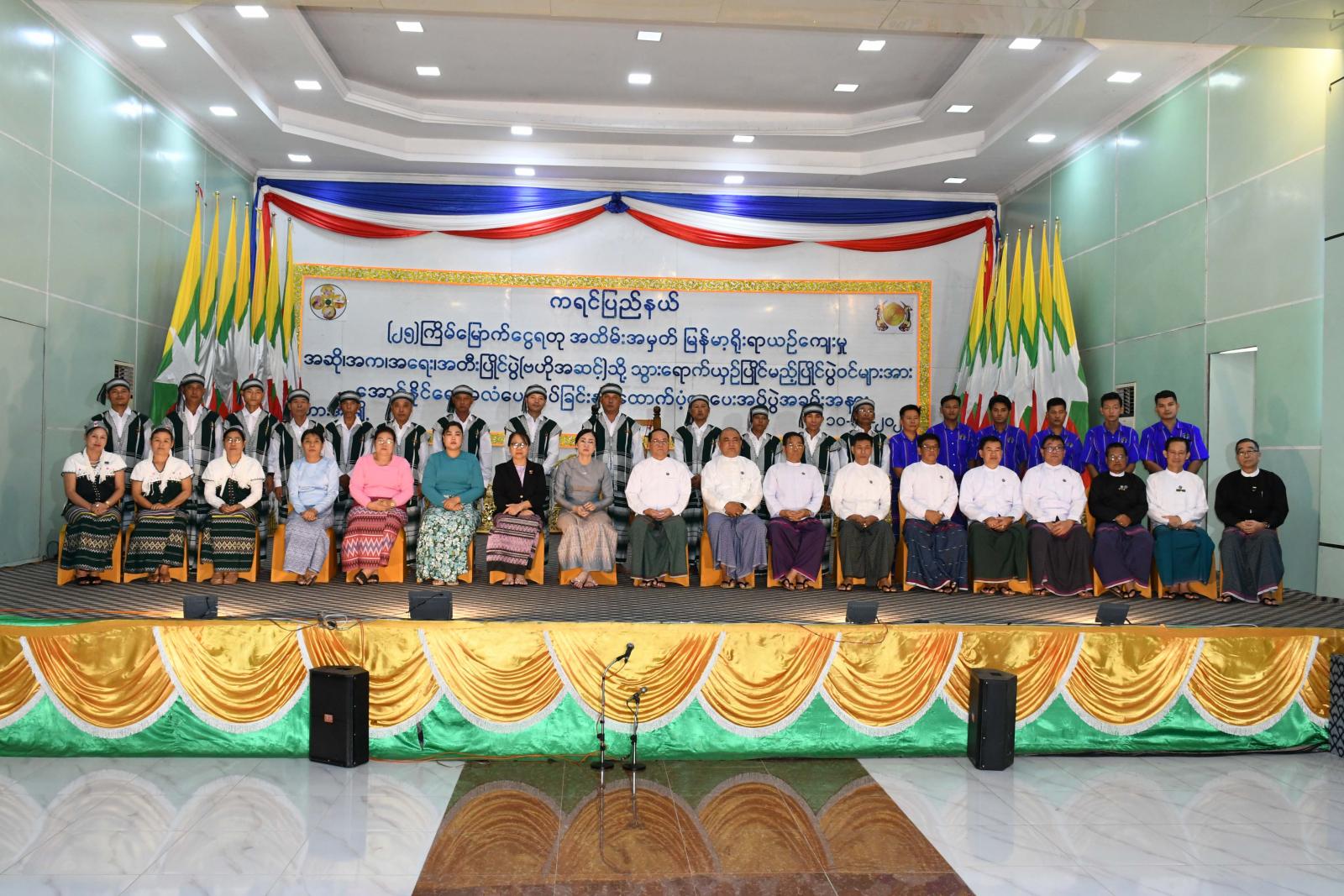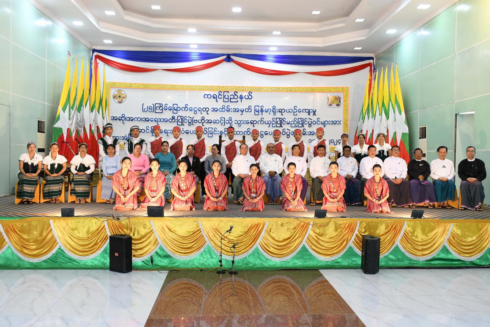 ဆက်လက်၍ နေပြည်တော်တွင်ကျင်းပမည့် (၂၅)ကြိမ်မြောက်မြန်မာ့ရိုးရာယဉ်ကျေးမှု အဆို၊ အက၊ အရေး၊ အတီးပြိုင်ပွဲ (ဗဟိုအဆင့်)သို့ သွားရောက်ယှဉ်ပြိုင်မည့် ကရင်ပြည်နယ်ကိုယ်စားပြု ယဉ်ကျေးမှုအဖွဲ့အား ယမန်နေ့ နံနက် ၉ နာရီက ဘားအံမြို့၊ ဇွဲကပင်ခန်းမ၌ အောင်နိုင်ရေးအလံနှင့် ထောက်ပံ့ငွေများပေးအပ်ခဲ့သည်။
