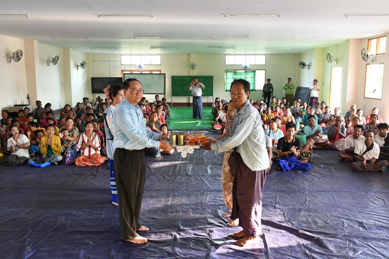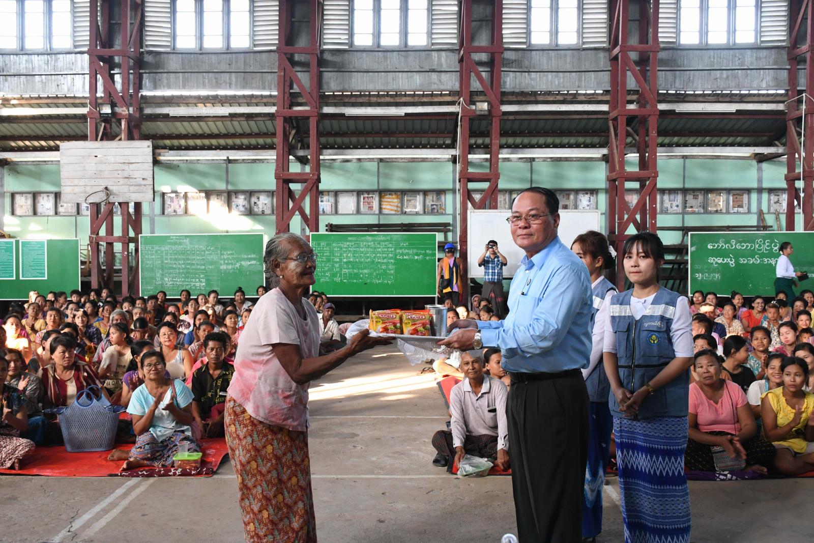 ထိုသို့ပေးအပ်ရာတွင် ကရင်ပြည်နယ်ဝန်ကြီးချုပ်ဦးစောမြင့်ဦးက ရေဘေးစခန်းများပိတ်သိမ်းပြီးဖြစ်သော်လည်း စားသောက်ရေးအဆင်ပြေစေရန် ထပ်မံထောက်ပံ့ပေးခြင်းဖြစ်ပြီး အိမ်ထောင်စု တစ်စုလျှင် အသားစည်သွပ်ဘူး ၂ ဘူး၊ လူတစ်ဦးလျှင် ခေါက်ဆွဲခြောက်(၁၀)ထုပ်နှုန်းဖြင့် ထောက်ပံ့ပေးသွားမည်ဖြစ်ကြောင်း အားပေးစကားများပြောကြား၍ ပြည်နယ်ဝန်ကြီးချုပ်နှင့်တာဝန်ရှိသူများသည် ဘားအံမြို့၊ မိုးလုံလေလုံအားကစားခန်းမ၌ ယာယီပြောင်းရွှေ့နေထိုင်ခဲ့သော အိမ်ထောင်စု ၁၈၇ စု၊ လူဦးရေ ၈၀၃ ဦးအတွက် အမျိုးသားသဘာဝဘေးအန္တရာယ်ဆိုင်ရာ စီမံခန့်ခွဲမှုကော်မတီမှ စည်သွပ်ဘူး ၃၇၄ ဘူး၊ ခေါက်ဆွဲခြောက် ၈၀၃၀ ထုပ်၊ အမှတ်(၃)အခြေခံပညာအထက်တန်းကျောင်း မိုးလုံလေလုံအားကစားရုံ၌ ယာယီပြောင်းရွှေ့နေထိုင်ခဲ့သော အိမ်ထောင်စု ၃၃၃ စု၊ လူဦးရေ ၁၄၉၂ ဦးအတွက် စည်သွပ်ဘူး ၆၆၆ ဘူး၊ ခေါက်ဆွဲခြောက် ၁၄၉၂၀ ထုပ်၊ လှာကမြင်အလယ်တန်းကျောင်းခွဲ၌ ယာယီပြောင်းရွှေ့နေထိုင်ခဲ့သော အိမ်ထောင်စု ၁၄၇ စု၊ လူဦးရေ ၆၃၇ ဦးအတွက် စည်သွပ်ဘူး ၂၉၄ ဘူး၊ ခေါက်ဆွဲခြောက် ၆၃၇၀ ထုပ်တို့ကို ထောက်ပံ့ပေးအပ်ခဲ့ကြသည်။