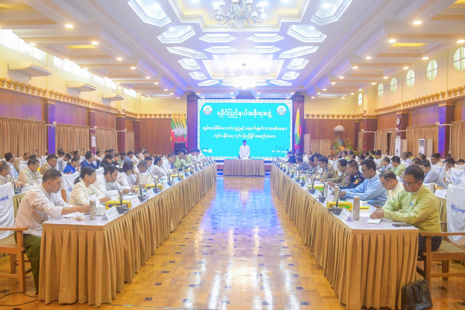 ဆက်လက်၍ ပြည်နယ်အစိုးရအဖွဲ့ဝင်များက ဆွမ်းဆန်စိမ်းလောင်းလှူပွဲနှင့် ရေစက်ချမင်္ဂလာအခမ်းအနား အောင်မြင်စွာကျင်းပနိုင်ရေး စီစဉ်ဆောင်ရွက်ထားရှိမှု၊ ဆောင်ရွက်ကြရမည့် အစီအမံများ၊ ဆက်လက်ဆောင်ရွက်ရမည့် အစီအမံများကို ရှင်းလင်းတင်ပြကြသည်။