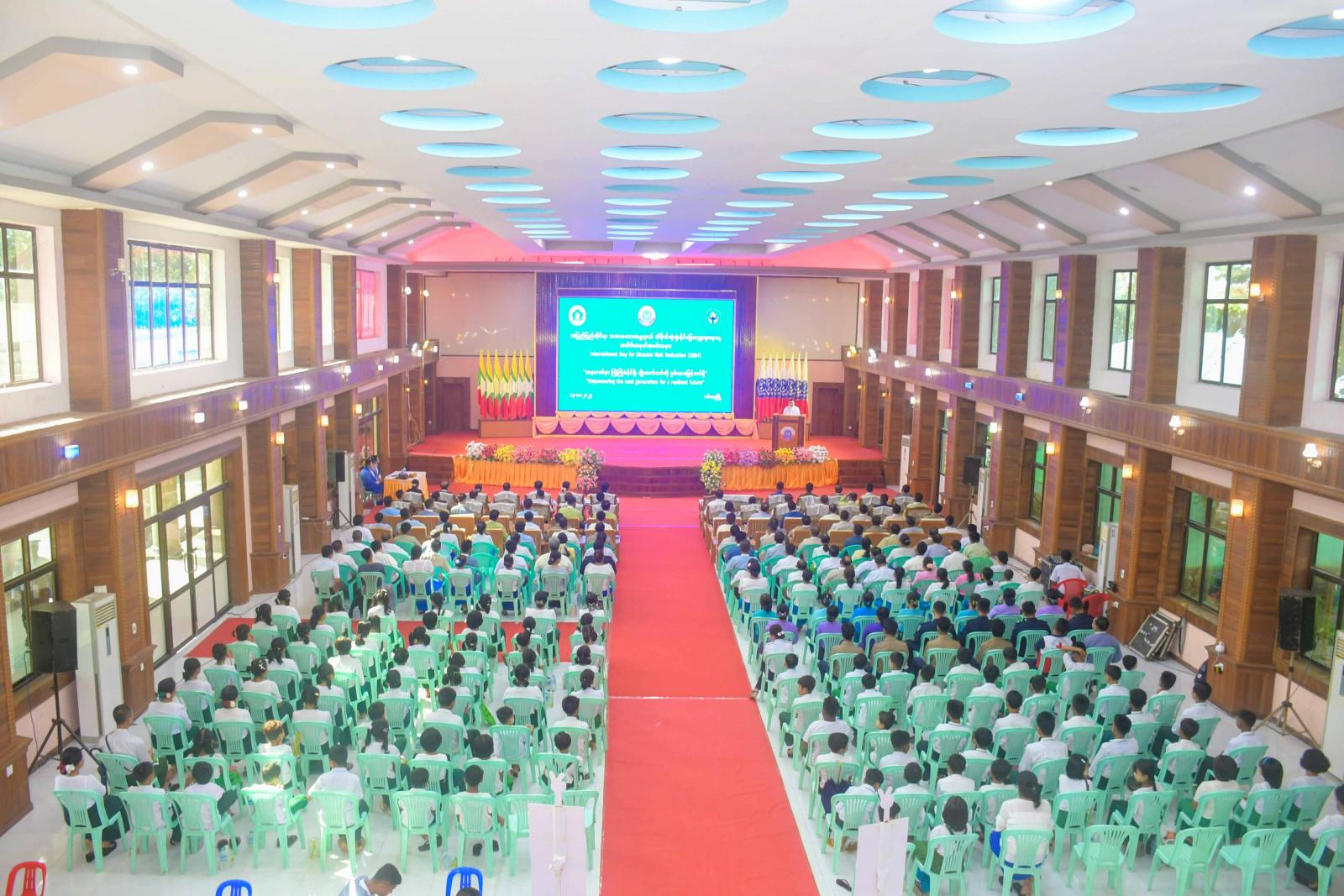 အပြည်ပြည်ဆိုင်ရာ သဘာဝဘေးအန္တရာယ် ထိခိုက်ဆုံးရှုံးနိုင်ခြေလျှော့ချရေးနေ့အထိမ်းအမှတ်အခမ်းအနားကို ယနေ့နံနက်ပိုင်းက စစ်တွေမြို့၊ ခိုင်သဇင်ခန်းမ၌ကျင်းပရာ ရခိုင်ပြည်နယ်ဝန်ကြီးချုပ် ဦးထိန်လင်းနှင့်ဇနီး ပြည်နယ်အမျိုးသမီးရေးရာအဖွဲ့နာယက ဒေါ်ဆွေဆွေမြတ်၊ ပြည်နယ်အစိုးရ အဖွဲ့ဝင်များနှင့်ဇနီးများ၊ စစ်တွေတပ်နယ်မှ တပ်မတော်အရာရှိကြီးများ၊ ဌာနဆိုင်ရာများ၊ လူမှုရေးအဖွဲ့အစည်းများမှကိုယ်စားလှယ်များ၊ ဆရာ၊ ဆရာမများနှင့် ကျောင်းသား၊ ကျောင်းသူများတက်ရောက်ကြသည်။