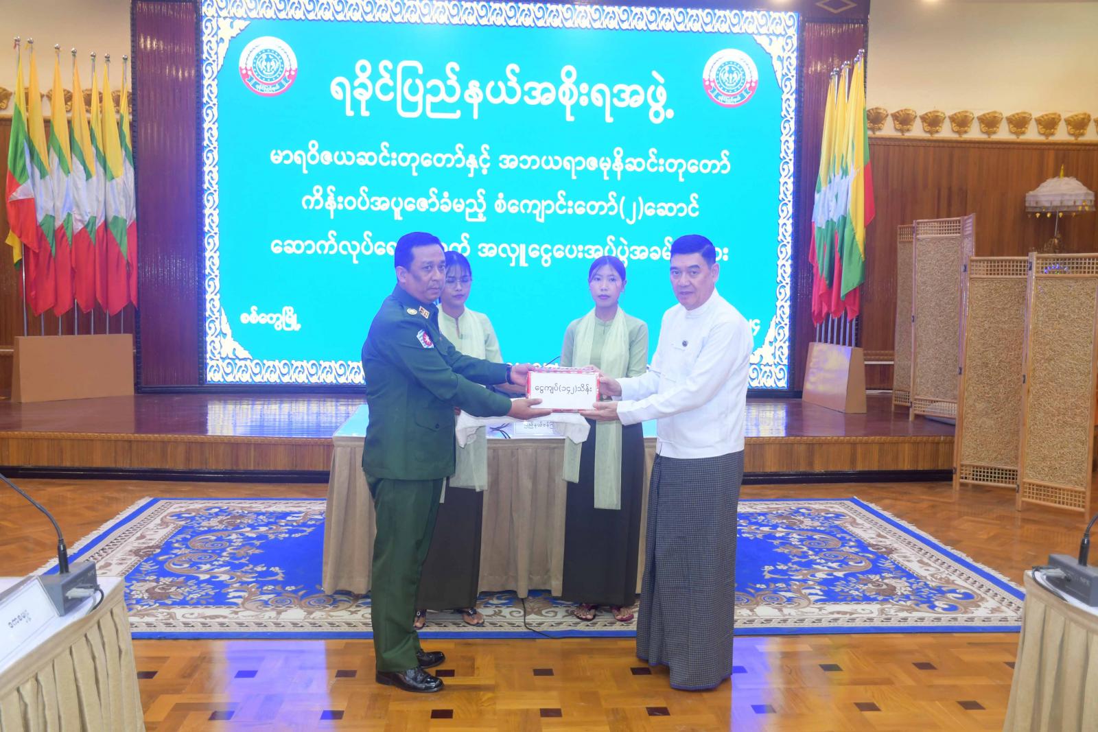 ထို့နောက် မာရဝိဇယဆင်းတုတော်နှင့် အဘယရာဇမုနိ ဆင်းတုတော်နှစ်ဆူအတွက် စံကျောင်းတော်(၂) ဆောင် ဆောက်လုပ်နိုင်ရေးအတွက် ရခိုင်ပြည်နယ်အစိုးရအဖွဲ့၊ ဒေသကွပ်ကဲမှုစစ်ဌာနချုပ်(စစ်တွေ)၊ ဌာနဆိုင်ရာများ၊ ကုမ္ပဏီများ၊ လုပ်ငန်းရှင်များနှင့် အလှူရှင်စေတနာရှင်များက လှူဒါန်းငွေတို့ကို ပေးအပ်လှူဒါန်းကြရာ ပြည်နယ်ဝန်ကြီးချုပ်ဦးထိန်လင်း၊ ဒေသကွပ်ကဲရေးမှူး(စစ်တွေ)နှင့် ပြည်နယ်အစိုးရအဖွဲ့ဝင်များက လက်ခံရယူကြပြီး ဂုဏ်ပြုမှတ်တမ်းလွှာများ ပြန်လည်ပေးအပ်ခဲ့ကြ သည်။