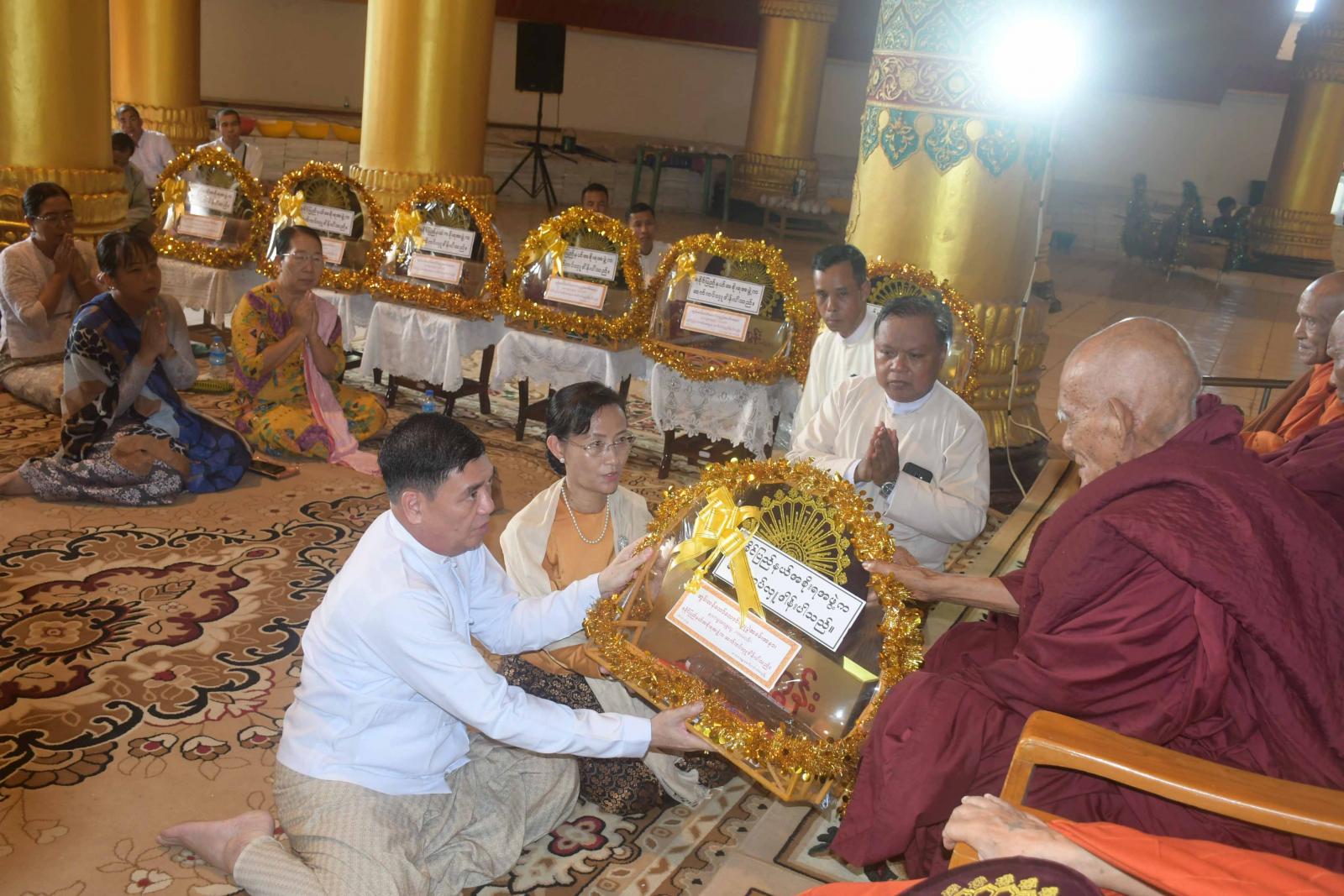 ယင်းနောက် ပြည်နယ်ဝန်ကြီးချုပ်နှင့်ဇနီး၊ ပြည်နယ်အစိုးရအဖွဲ့ဝင်များနှင့် တာဝန်ရှိသူများက သံဃာတော်အရှင်သူမြတ်များအား လှူဖွယ်ဝတ္ထုများဆက်ကပ်လှူဒါန်းကြသည်။