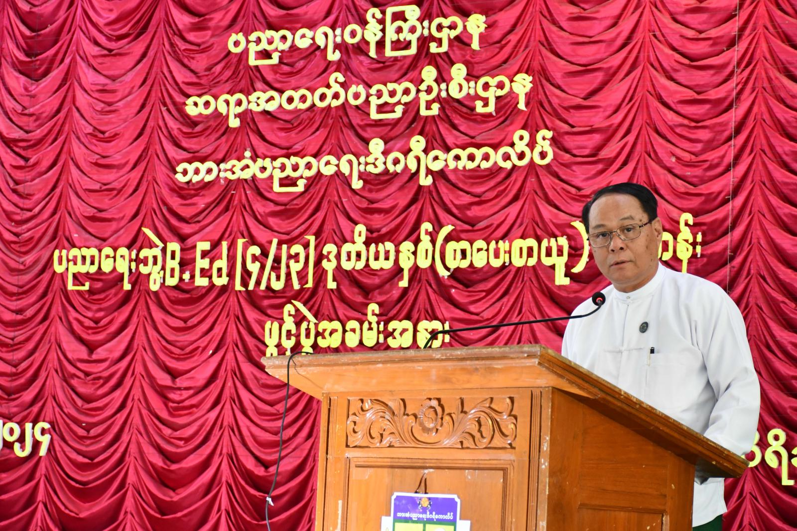 ယနေ့ဖွင့်လှစ်သည့် ပညာရေးဘွဲ့ B.Ed ဒုတိယနှစ် စာပေးစာယူသင်တန်းကို အခြေခံပညာဦးစီးဌာနရှိ ကျောင်းများတွင် လိုအပ်လျက်ရှိသော အရည်အသွေးပြည့်ဝသည့် အထက်တန်းပြဆရာ/ဆရာမများ ဖြည့်ဆည်းပေးနိုင်ရန် ရည်ရွယ်ဖွင့်လှစ်ခြင်းဖြစ်ပြီး ပညာရေးသဘောတရား၊ ပညာရေးစိတ်ပညာ၊ English Language Proficiency(ELP)၊ အထူးပြုဘာသာရပ်များ၏ သင်ပြနည်းနှင့်တတ်ကျွမ်းမှုဘာသာရပ်များကို တစ်လခွဲကြာ သင်ကြားပို့ချပေးသွားမည်ဖြစ်သည်။
