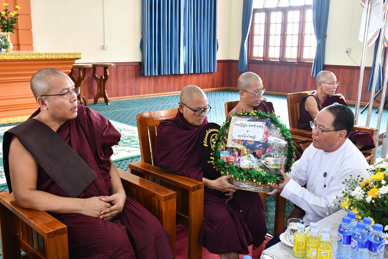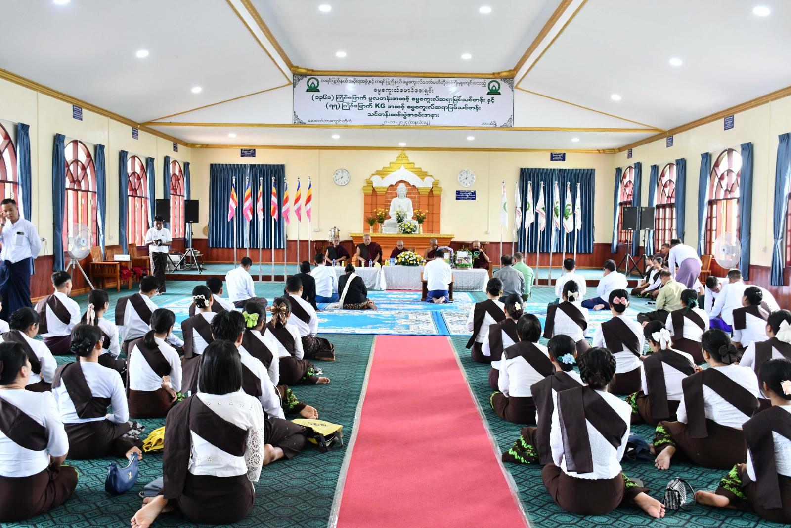 ဦးစွာ သင်တန်းဆင်းပွဲကို နမောတဿသုံးကြိမ်ရွတ်ဆိုဘုရားကန်တော့၍ ဖွင့်လှစ်ပြီး နိုင်ငံတော်သံဃမဟာနာယကအဖွဲ့ဝင် ခေမာရာမကျောင်းတိုက်ဆရာတော် အဂ္ဂမဟာပဏ္ဍိတဘဒ္ဒန္တသောပါကက ဩဝါဒကထာချီးမြှင့်တော်မူပြီး ပြည်နယ်ဝန်ကြီးချုပ်ဦးစောမြင့်ဦးက သာသနာရေးဆိုင်ရာများလျှောက်ထားတင်ပြကာ ဆရာတော် သံဃာတော်များအား လှူဖွယ်ဝတ္ထုပစ္စည်းများဆက်ကပ်လှူဒါန်းသည်။