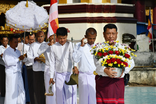 ဦးစွာ မြတ်စွာဘုရားရှင်အားအမှူးထား၍ သံဃာတော်၊ အရှင်သူမြတ်များဦးဆောင်ကာ ဥပ္ပါတသန္တိ ပါဠိတော်ကိုပင့်ဆောင်ပြီး စေတီတော်ကြီးအား လက်ယာရစ်တစ်ပတ် လှည့်လည်ပူဇော်ပေးပြီး နမောတဿ သုံးကြိမ်ရွတ်ဆို ဘုရားကန်တော့၍ အခမ်းအနားကို ဖွင့်လှစ်ပေးသည်။