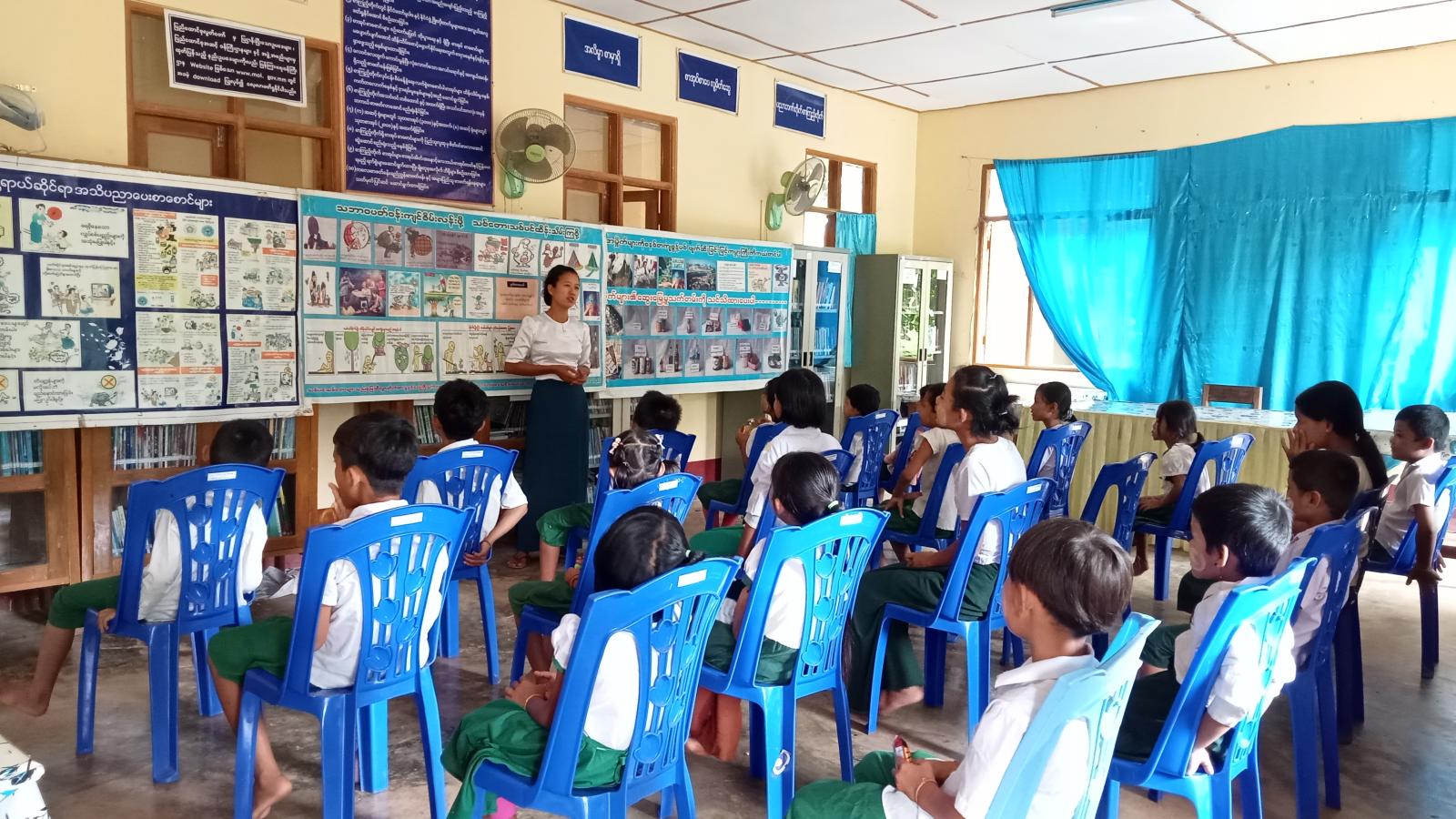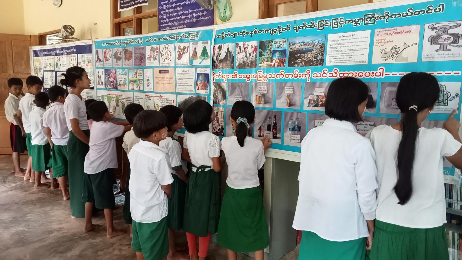 ရှေးဦးစွာမြို့ဦးစီးမှူးဒေါ်ဇင်မိုးအေးနှင့် စာထောက်-၃ ဒေါ်နော်မုနော်ဂေတို့က ရေကြီးမှုဖြစ်ပေါ်လာပါ က လိုက်နာရမည့်အချက်များ၊ ရေမကြီးမီကြိုတင်ပြင်ဆင်ရမည့်အချက်များနှင့် သစ်တော သစ်ပင် ထိန်းသိမ်းခြင်းဆိုင်ရာ သိကောင်းစရာများကို ကျောင်းသား၊ ကျောင်းသူများအား စကောကရင်၊ မြန်မာနှစ်ဘာသာဖြင့် အသိပညာပေးဟောပြောပြီးနောက် သဘာဝဘေးအန္တရာယ်များဖြစ်သော မြေပြိုဘေး၊ ငလျင်ဘေး၊ ရေဘေးအသိပညာပေး အချက်များပါဝင်သည့် အသိပညာပေးနံရံကပ်စာစောင်နှင့် သဘာဝပတ်ဝန်းကျင် ထိန်းသိမ်းရေးဆိုင်ရာ သိကောင်းစရာများ ပြသဆောင်ရွက်ထားရာ ကျောင်းသား၊ ကျောင်းသူများက စိတ်ဝင်စားစွာ ကြည့်ရှုလေ့လာ မှတ်သားခဲ့ကြောင်း သိရသည်။