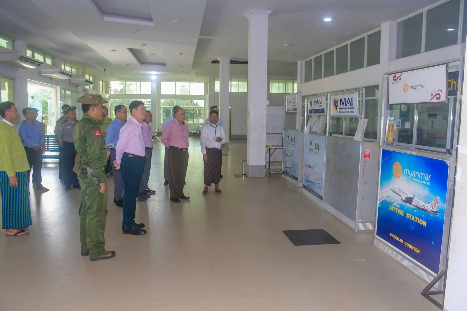 ဦးစွာ ပြည်နယ်ဝန်ကြီးချုပ်နှင့်အဖွဲ့သည် စစ်တွေလေဆိပ်သို့သွားရောက်ပြီး လေယာဉ်ကွင်း၊ လေယာဉ်ပြေးလမ်းပတ်လည်အတွင်း လေယာဉ်များတက်ဆင်းရာတွင် အန္တရာယ်ကင်းရှင်းနိုင်ရေးအတွက် စီစဉ်ဆောင်ရွက်ထားရှိမှု၊ လေဆိပ်ပတ်ဝန်းကျင်သန့်ရှင်းသာယာရေးအတွက် ဆောင်ရွက်ထားရှိမှုတို့ကို လှည့်လည်ကြည့်ရှုစစ်ဆေးကြသည်။ ဆက်လက်၍ ပြည်နယ်ဝန်ကြီးချုပ်နှင့်အဖွဲ့သည် လေဆိပ်အတွင်း ခရီးသည်များ ထွက်ခွာဆောင်နှင့် ဆိုက်ရောက်ဆောင်များအတွင်း သန့်ရှင်းသာယာရေး ခရီးသည်များအေးချမ်းစွာ ခရီးသွားလာနိုင်ရေးအတွက် ဆောင်ရွက်ထားရှိမှုတို့ကို လှည့်လည်ကြည့်ရှုစစ်ဆေးပြီး ပြည်နယ်ဝန်ကြီးချုပ်က ခရီးသွားပြည်သူများအေးချမ်းစွာ ခရီးသွားလာနိုင်ရေး ကူညီဆောင်ရွက်ပေးကြရန်နှင့် ခရီးသည်အဝင်အထွက်နေရာများ၊ နားနေခန်းနေရာများနှင့် လေဆိပ်ပတ်ဝန်းကျင် သန့်ရှင်းသာယာလှပရေးတို့ကို စနစ်တကျဆောင်ရွက်ကြရန် တာဝန်ရှိသူများအား မှာကြားခဲ့သည်။ ဆက်လက်၍ ပြည်နယ်ဝန်ကြီးချုပ်နှင့်အဖွဲ့သည် လေဆိပ်အတွင်း လုံခြုံရေးကင်မရာများတပ်ဆင်ထားရှိမှု၊ ခရီးသွားပြည်သူများအားလုံခြုံရေးအတွက် စစ်ဆေးဆောင်ရွက်သည့် နေရာများအား လှည့်လည်ကြည့်ရှုစစ်ဆေးပြီး လေဆိပ်တာဝါမှ လေယာဉ်များအန္တရာယ်ကင်းရှင်းစွာ ဆင်းသက်နိုင်ရေးစီမံ ဆောင်ရွက်နေမှုတို့ကို သွားရောက်ကြည့်ရှုစစ်ဆေးကြသည်။