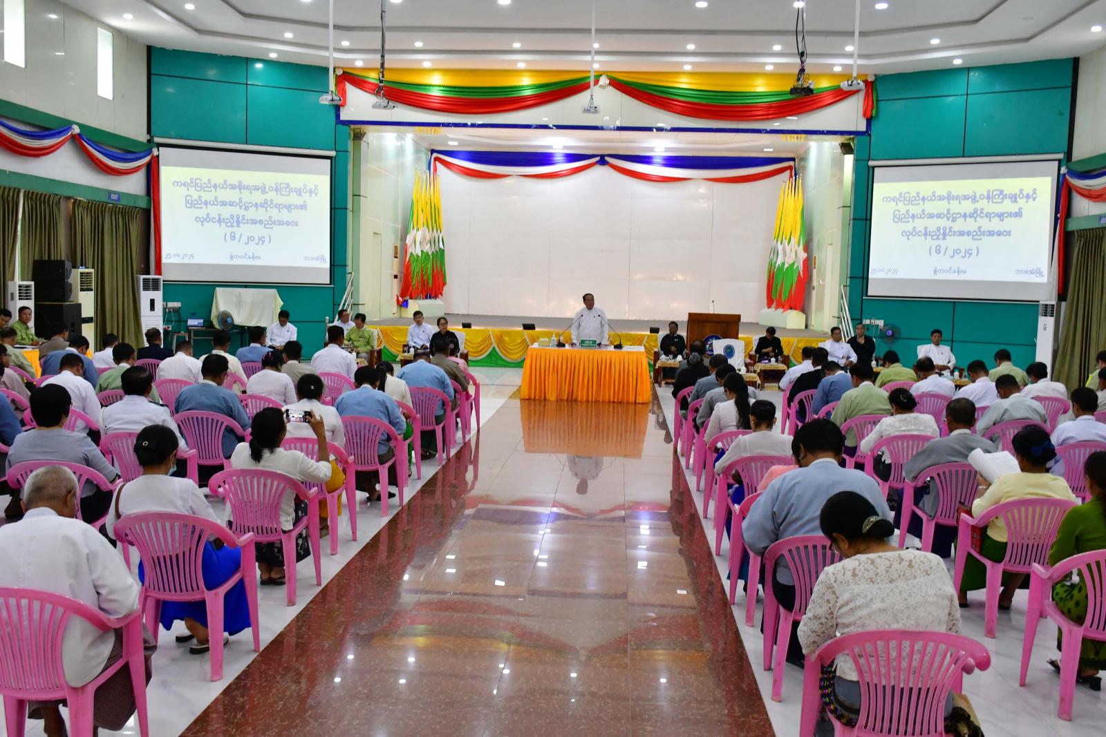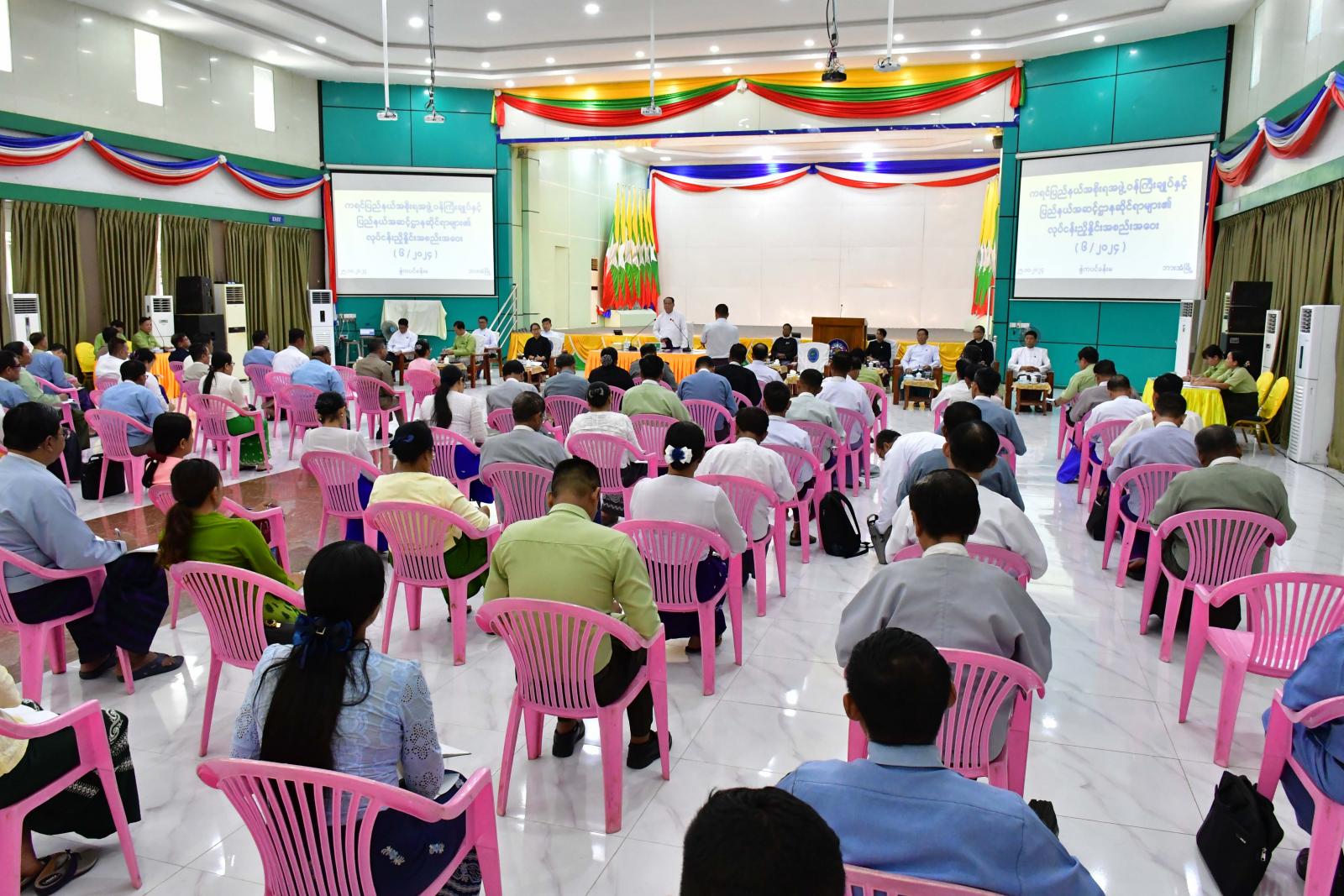 အလားတူ ဒေသတွင်း လုံခြုံရေး၊ တည်ငြိမ်အေးချမ်းရေး၊ တရားဥပဒေစိုးမိုးရေး၊ ဒေသဖွံ့ဖြိုးရေးနှင့် ပြည်သူ့အကျိုးပြုလုပ်ငန်းများဆောင်ရွက်ရာတွင် ပိုမိုထိရောက်မြန်ဆန်စေရေးအတွက် ကရင်ပြည်နယ်အစိုးရအဖွဲ့ ပြည်နယ်ဝန်ကြီးချုပ်နှင့် ပြည်နယ်အဆင့်ဌာနဆိုင်ရာများ၏ (၆/၂၀၂၄)ကြိမ်မြောက် လုပ်ငန်းညှိနှိုင်းအစည်းအဝေးကို ယမန်နေ့နံနက် ၁၀ နာရီက ဘားအံမြို့၊ ဇွဲကပင်ခန်းမ၌ ကျင်းပရာ ပြည်နယ်ဝန်ကြီးချုပ်က အဖွင့်အမှာစကားပြောကြားသည်။