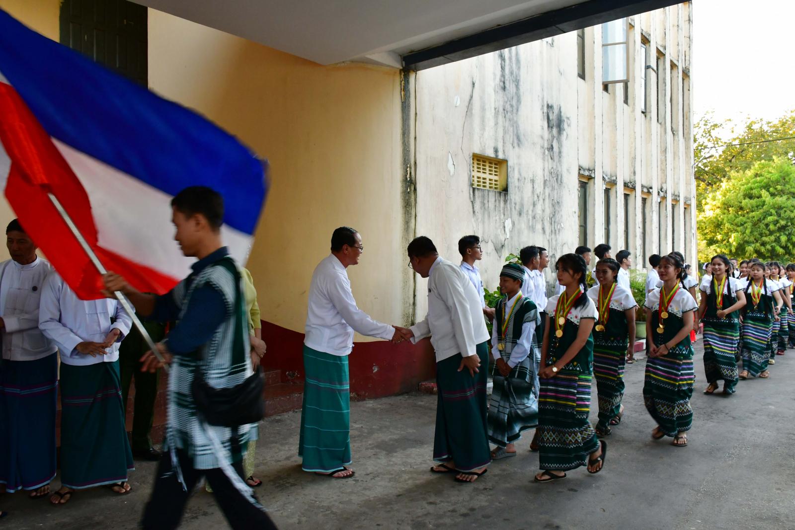 (၂၅)ကြိမ်မြောက် ငွေရတုအထိမ်းအမှတ် မြန်မာ့ရိုးရာယဉ်ကျေးမှု အဆို၊ အက၊ အရေး၊ အတီးပြိုင်ပွဲကြီးသို့ ဝင်ရောက်ယှဉ်ပြိုင်ခဲ့သော ကရင်ပြည်နယ်ကိုယ်စားပြု အောင်ပွဲရပြိုင်ပွဲဝင်များသည် အောက်တိုဘာလ ၂၄ ရက်နေ့ မွန်းလွဲပိုင်းက ဘားအံမြို့သို့ပြန်လည်ရောက်ရှိလာရာ ပြည်နယ်ဝန်ကြီးချုပ်ဦးစောမြင့်ဦးနှင့်တာဝန်ရှိသူများက ဂုဏ်ပြုကြိုဆိုခဲ့ကြသည်။