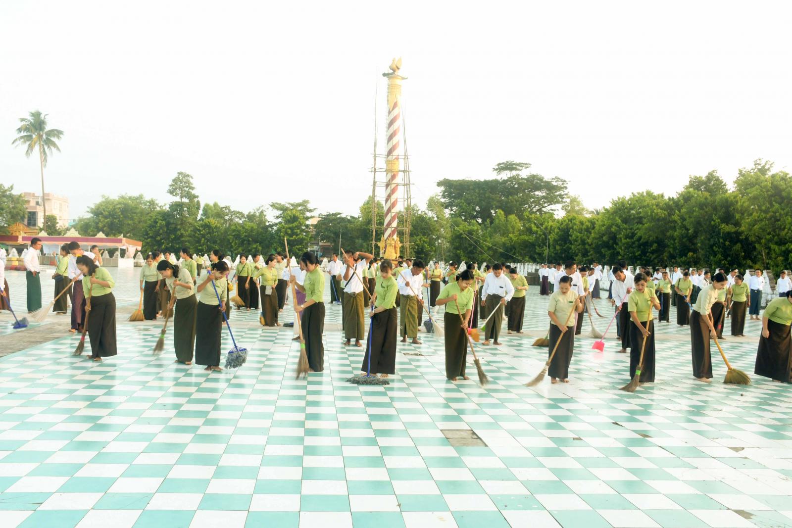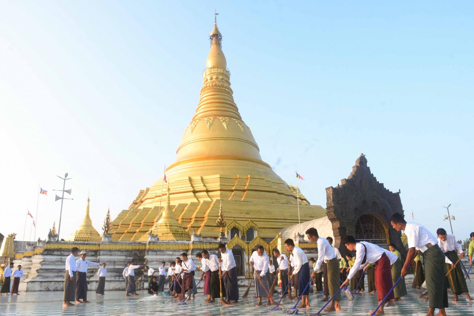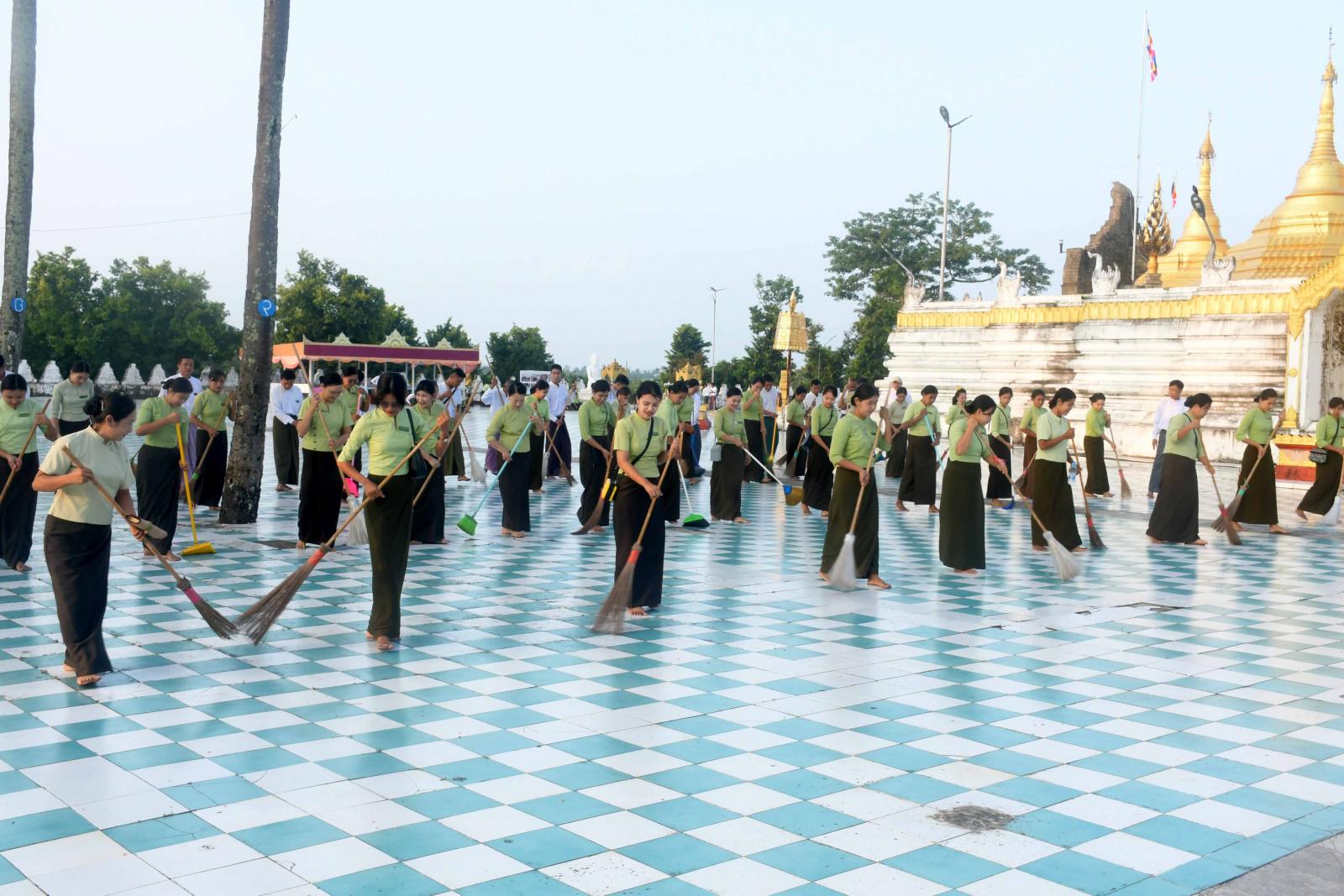 ဆက်လက်၍ အထွေထွေအုပ်ချုပ်ရေးဦးစီးဌာနမှဝန်ထမ်းများသည် စေတီတော်ရင်ပြင်သန့်ရှင်း သာယာရေး၊ ဘုရားဖူးပြည်သူများ စိတ်အေးချမ်းသာစွာ ဘုရားဖူးမြော်အနားယူနိုင်ရေးအတွက် ရင်ပြင်တော်ရှိ အမှိုက်သရိုက်များအား ကောက်ယူသိမ်းဆည်းခြင်း၊ ရင်ပြင်တော်ဆေးကြောခြင်းများကို စုပေါင်း၍ ကုသိုလ်ယူသန့်ရှင်းရေးဆောင်ရွက်ခဲ့ကြသည်။
