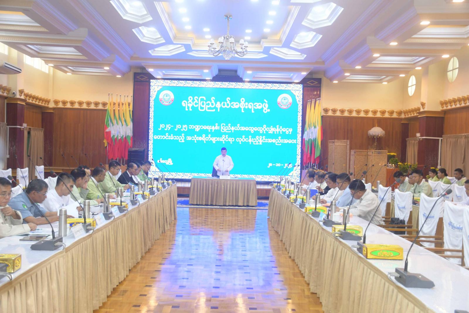 ၂၀၂၄-၂၀၂၅ ဘဏ္ဍာရေးနှစ်၊ ပြည်နယ်အထွေထွေပိုလျှံရန်ပုံငွေ(GRF)မှ ကျခံသုံးစွဲခွင့်ပြုရန် တင်ပြလာသည့် အသုံးစရိတ်များနှင့်စပ်လျဉ်း၍ လုပ်ငန်းညှိနှိုင်းအစည်းအဝေးကို ယမန်နေ့နံနက်ပိုင်းက ရခိုင်ပြည်နယ်အစိုးရအဖွဲ့ရုံး အစည်းအဝေးခန်းမ၌ကျင်းပရာ ရခိုင်ပြည်နယ်ဝန်ကြီးချုပ် ဦးထိန်လင်း၊ ပြည်နယ်အစိုးရအဖွဲ့ဝင်များ၊ ပြည်နယ်အဆင့် ဌာနဆိုင်ရာများနှင့် ဖိတ်ကြားထားသူများ တက်ရောက်ခဲ့ကြသည်။