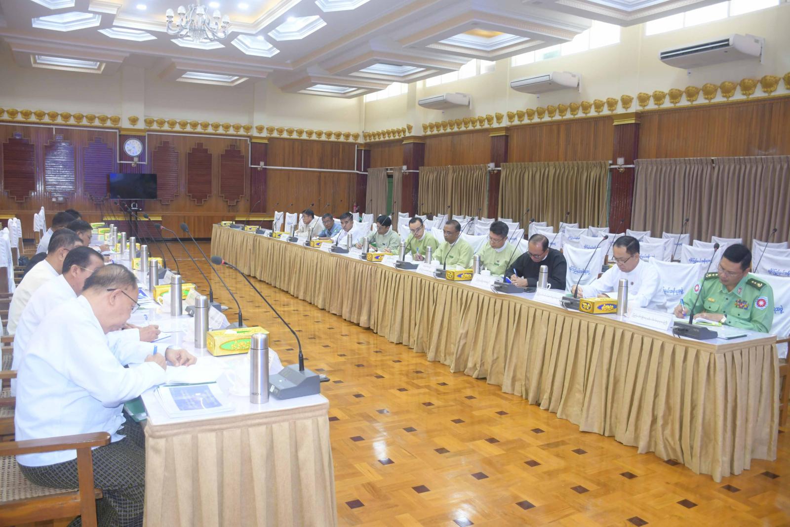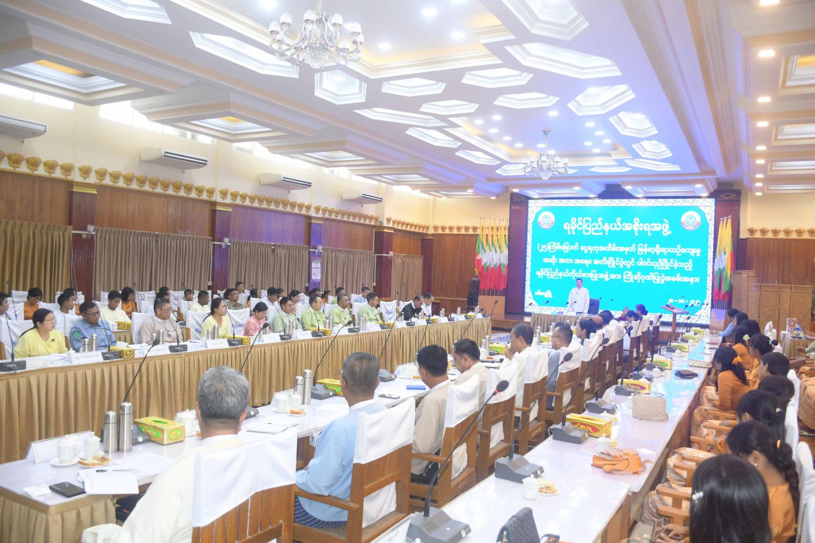 ညှိနှိုင်းအစည်းအဝေးတွင် ရခိုင်ပြည်နယ်ဝန်ကြီးချုပ် ဦးထိန်လင်းက ၂၀၂၄-၂၀၂၅ ဘဏ္ဍာရေးနှစ်အတွင်း ပြည်ထောင်စု၊ ပြည်နယ်ငွေလုံးငွေရင်းရန်ပုံငွေများဖြင့် ဆောင်ရွက်မည့်လုပ်ငန်းများနှင့် စပ်လျဉ်း၍ လုပ်ငန်းညှိနှိုင်းအစည်းအဝေးများကို ဩဂုတ်လအတွင်းမှာ ကျင်းပခဲ့ပြီးဖြစ်ကြောင်း၊ ထိုအစည်းအဝေးတွင် လက်ရှိဖြစ်ပေါ်နေသည့် နယ်မြေဒေသအခြေအနေအရ ဆောင်ရွက်နိုင်မှုမရှိသည့် လုပ်ငန်းများကို ပြန်လည်အပ်နှံဆောင်ရွက်စေပြီး မဖြစ်မနေဆောင်ရွက်ရန် လိုအပ်သည့်လုပ်ငန်းများကိုသာ ပြည်နယ်အထွေထွေပိုလျှံရန်ပုံငွေ(GRF)မှ ပြန်လည်တောင်းခံနိုင်ရေး ဘဏ္ဍာရေးလုပ်ထုံးလုပ်နည်းနှင့်အညီ ဆောင်ရွက်ရန် ဆုံးဖြတ်ခဲ့ပြီးဖြစ်ကြောင်း၊ အထွေထွေပိုလျှံရန်ပုံငွေ(GRF) သို့အပ်နှံပြီး ပြန်လည်ထုတ်ယူသုံးစွဲသည့်ကိစ္စရပ်များကို ဘဏ္ဍာရေးလုပ်ထုံးလုပ်နည်းနှင့်အညီ ဆောင်ရွက်ခွင့်ပြုထားသော်လည်း ၎င်းကိုအခွင့်အရေးတစ်ရပ်အနေဖြင့် သုံးစွဲခြင်းမဖြစ်စေရေး တိုင်းဒေသကြီး (သို့မဟုတ်) ပြည်နယ်အစိုးရအဖွဲ့များက ကြပ်မတ်ဆောင်ရွက်နိုင်ပါရန် ပြည်ထောင်စုအစိုးရအဖွဲ့ရုံးမှ အကြောင်းကြားထားကြောင်း၊ ရခိုင်ပြည်နယ်၏ ၂၀၂၄-၂၀၂၅ ဘဏ္ဍာရေးနှစ်အတွင်း ပြည်နယ်အထွေထွေပိုလျှံရန်ပုံငွေ (GRF)မှ ပြန်လည်သုံးစွဲခွင့် တင်ပြလာသောကိစ္စရပ်များတွင် ဘဏ္ဍာရေးလုပ်ထုံးလုပ်နည်းနှင့်အညီ သက်ဆိုင်ရာပြည်နယ်စက်ပစ္စည်းများ ကြီးကြပ်စစ်ဆေးထိန်းသိမ်းရေးကော်မတီ၊ ပြည်နယ်တည်ဆောက်ရေးလုပ်ငန်းများ စိစစ်ရေးကော်မတီနှင့် ဌာနများကစိစစ်ပြီး သဘောထားမှတ်ချက်များနှင့်အတူ တင်ပြလာသူကို စိစစ်တွေ့ရှိရကြောင်း၊ သို့သော်လည်း မြေပြင်တွင် လုပ်ငန်းဆောင်ရွက်နိုင်ခြင်း ရှိ၊ မရှိနှင့် သက်ဆိုင်ရာဘဏ္ဍာရေးနှစ်အတွင်း လုပ်ငန်းပြီးစီးအောင် ဆောင်ရွက်နိုင်ခြင်း ရှိ၊ မရှိကို (GRF)မှ ပြန်လည်သုံးစွဲခွင့် တင်ပြတောင်းခံထားသည့်ဌာနများက ယခုအစည်းအဝေးတွင် ရှင်းလင်းတင်ပြပေးကြစေလိုကြောင်းနှင့် ဆောင်ရွက်မည့်အခြေအနေများနှင့်ပတ်သက်၍ ယခုအစည်းအဝေးတွင် ဆုံးဖြတ်ပေးသွားမည်ဖြစ်ကြောင်း ပြောကြားခဲ့သည်။