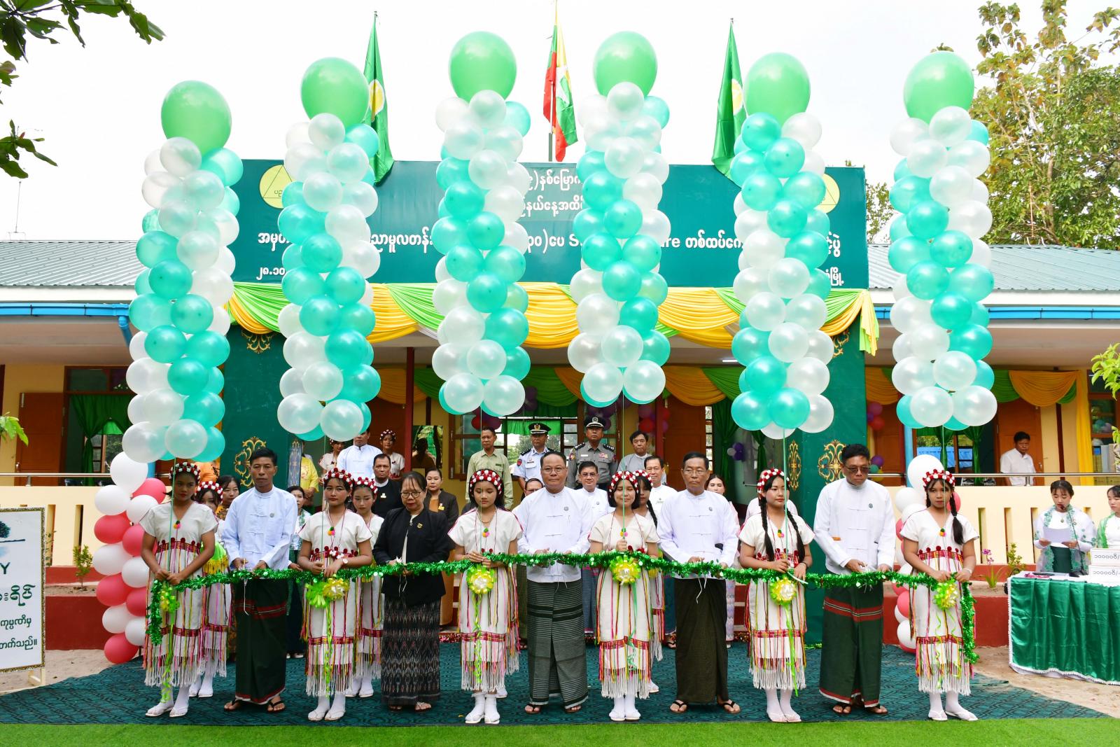 ဆက်လက်၍ ကျောင်းဆောင်သစ်လွှဲပြောင်းပေးအပ်ပွဲကို အဆိုပါကျောင်းဆောင်သစ်၌ ကျင်းပရာ ပြည်နယ်ဝန်ကြီးချုပ်က ယနေ့ဖွင့်လှစ်သည့်ကျောင်းဆောင်သစ်အား ရှေရှည်တည်တံ့ရန်နှင့် အစဉ်သန့်ရှင်းသာယာလှပစေရန် တာဝန်ထမ်းဆောင်နေကြသော ကျောင်းအုပ်ကြီးနှင့် ဆရာ၊ ဆရာမများက ထိန်းသိမ်းစောင့်ရှောက်၍ ကျောင်းအကျိုးတော်ဆောင်များ၊ မိဘများကလည်း ပံ့ပိုးဖြည့်ဆည်းပေးကြစေလိုကြောင်း၊ ကျောင်းကော်မတီများ၊ အကျိုးတော်ဆောင်များ၊ မိဘများအနေဖြင့် မိမိတို့၏ သားသမီးပညာသင်ကြားခွင့်ကို လမ်းကြောင်းအမှန်သို့ရောက်အောင် လမ်းညွှန်ပေးကြရန်နှင့် ဆရာ၊ ဆရာမများအနေဖြင့်လည်း ပညာရည်ထူးချွန်ပြီး နိုင်ငံအတွက် အားထားရသည့် ဗလငါးတန်နှင့် ပြည့်စုံသော တပည့်ကောင်းများ ပေါ်ထွက်အောင် သင်ကြားပေးကြစေလိုကြောင်း တိုက်တွန်းပြောကြားသည်။