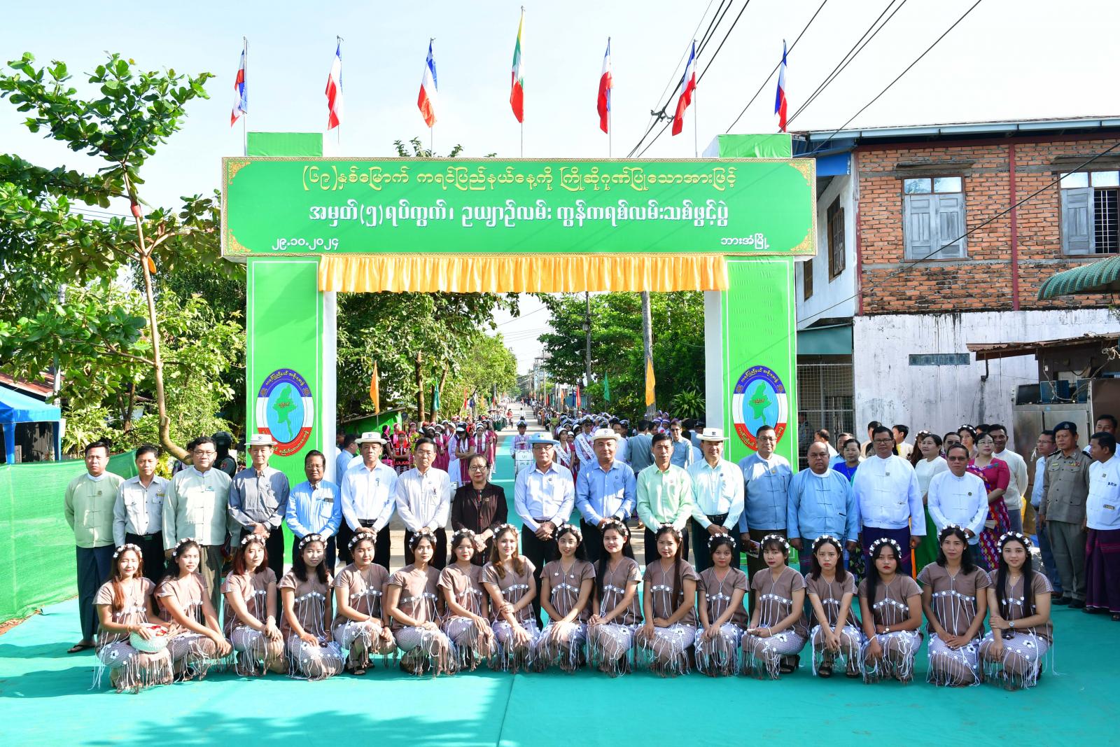 ယင်းနောက် ပြည်နယ်ဝန်ကြီးချုပ်က လမ်းသစ်ဖွင့်ပွဲတွင် ပါဝင်အားဖြည့်ကူညီပေးကြသော ယဉ်ကျေးမှုအဖွဲ့များနှင့် ဘင်ခရာ၊ပန်းပွားအဖွဲ့များအား ဂုဏ်ပြုဆုများပေးအပ်ချီးမြှင့်ပြီး စုပေါင်းမှတ်တမ်းဓာတ်ပုံများရိုက်ကူးကာ ကွန်ကရစ်လမ်းသစ်အား ဖြတ်သန်းကြည့်ရှုစစ်ဆေးခဲ့ကြသည်။