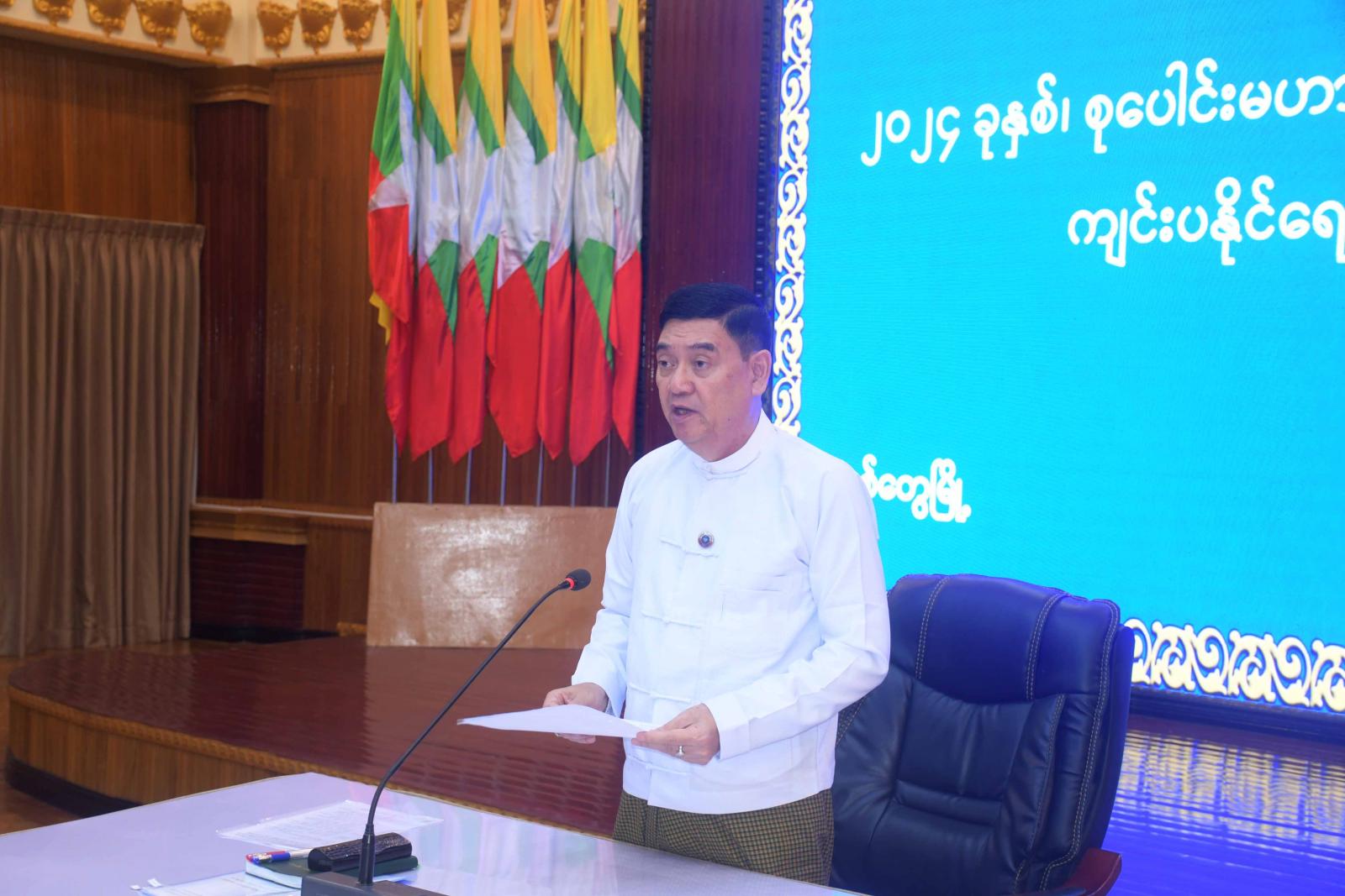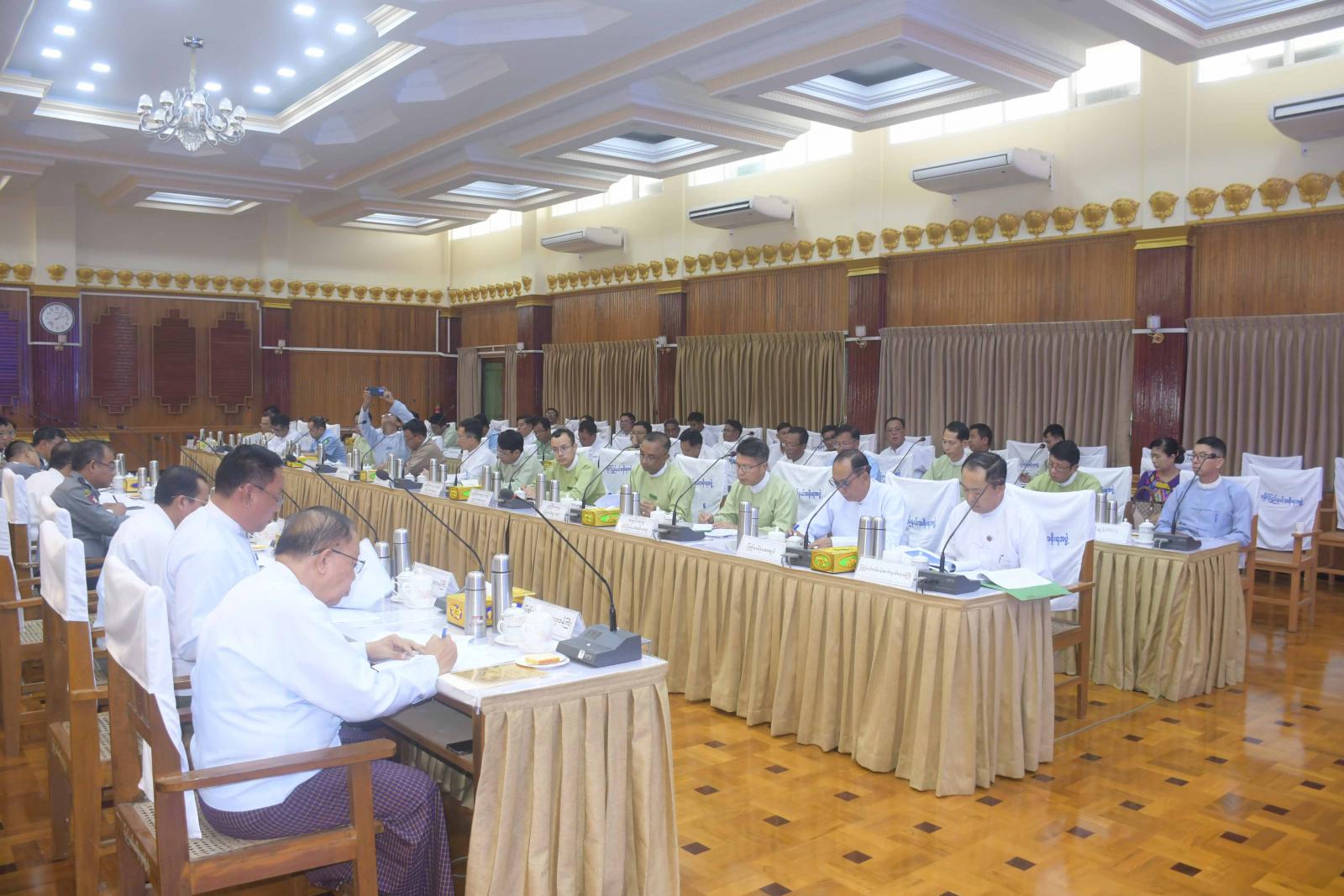ဆက်လက်ပြီး စုပေါင်းမဟာဘုံကထိန် အလှူတော်မင်္ဂလာအခမ်းအနား ကျင်းပရေးဦးစီးကော်မတီ အတွင်းရေးမှူး၊ လှုမှုရေးရာဝန်ကြီး ဦးသက်ထွန်းက အခမ်းအနားကျင်းပမည့်ကိစ္စနှင့် ပတ်သက်၍ ဆွေးနွေးတင်ပြသည်။