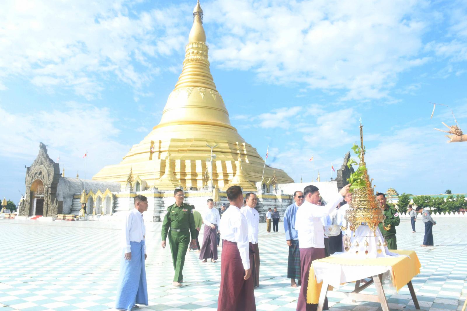 ပြည်နယ်ဝန်ကြီးချုပ်နှင့်အဖွဲ့သည် အတုလမာရဇိန် ပြည်လုံးချမ်းသာဘုရားကြီးအား သွားရောက်ဖူးမြော် ကြည်ညိုပြီး စစ်တွေမြို့ရှိ ဝင်္ကပါကွင်းအဆင့်မြှင့်တင်နိုင်ရေးအတွက် သွားရောက် ကြည့်ရှုစစ်ဆေးကာ လိုအပ်သည်များကို တာဝန်ရှိသူများအားမှာကြားသည်။ ယင်းနောက် ပြည်နယ်ဝန်ကြီးချုပ်နှင့်အဖွဲ့သည် ပြည်တွင်း၊ ပြည်ပသာသနာပြု၊ မဟာဇေယျသိဒ္ဓိ အဓိဋ္ဌာန်ကျောင်း ဆရာတော်ဘုရားကြီး တည်ထားကိုးကွယ် ပူဇော်ထားသည့် ရန်ပြေမာန်ပြေဘုရားကြီးအား ဖူးမြော်ကြည်ညိုကြပြီး (တန်ဆောင်မုန်းလပြည့်နေ့)တွင် ဘုရားကြီးရင်ပြင်၌ကျင်းပမည့် ဆီမီးပူဇော်ပွဲနှင့် မီးပုံးပျံလွှတ်တင်ပူဇော်ပွဲကျင်းပမည့် နေရာများကို သွားရောက် ကြည့်ရှုစစ်ဆေးပြီး လိုအပ်သည်များကို တာဝန်ရှိသူများအားမှာကြားခဲ့သည်။