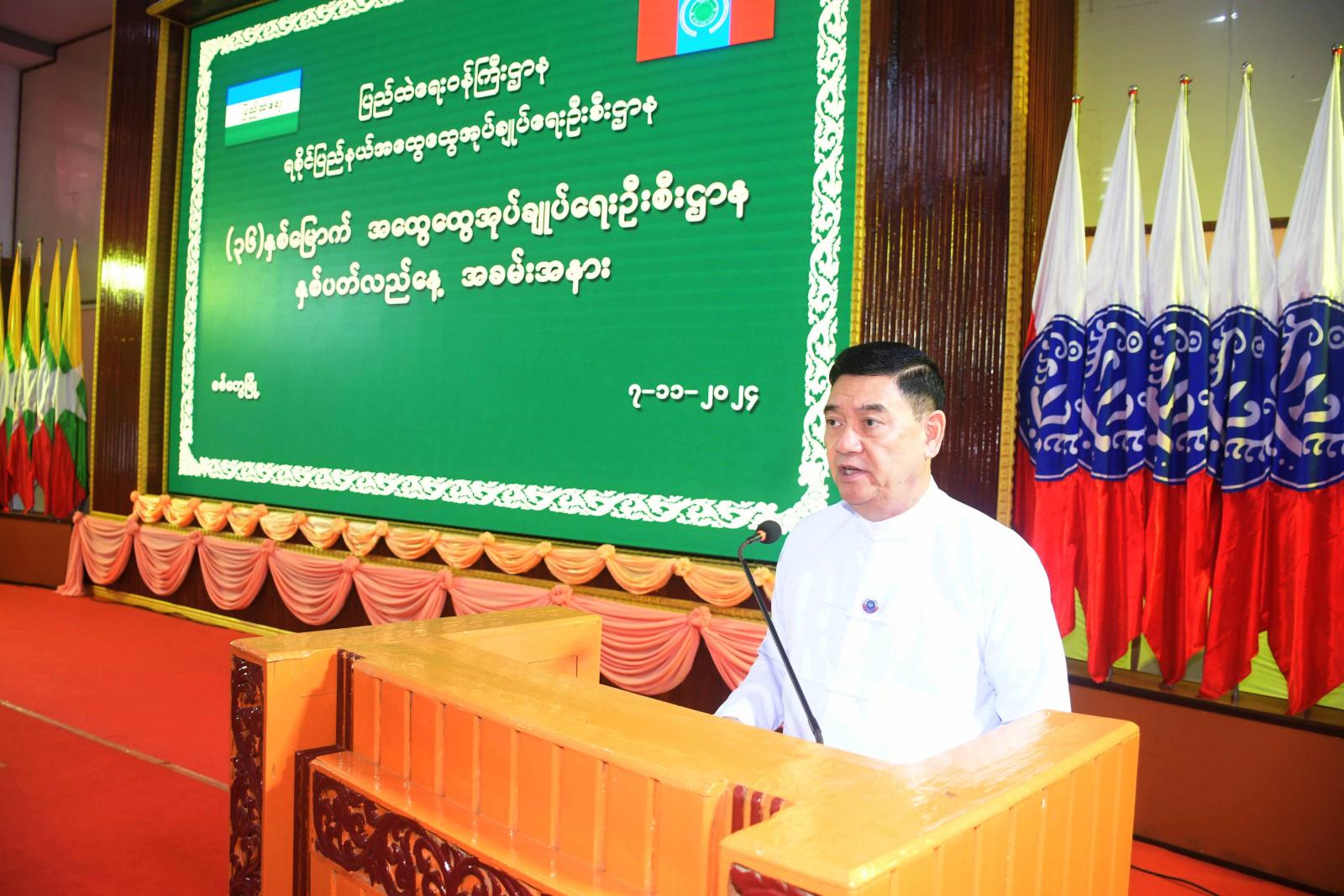 ဆက်လက်ပြီး ရခိုင်ပြည်နယ်အထွေထွေအုပ်ချုပ်ရေးဦးစီးဌာန၊ ပြည်နယ်အုပ်ချုပ်ရေးမှူး ဦးနေဝင်းအောင်က အထွေထွေအုပ်ချုပ်ရေးဦးစီးဌာန သမိုင်းကြောင်းနှင့် ဖြစ်ပေါ်လာပုံအား ရှင်းလင်းတင်ပြသည်။
