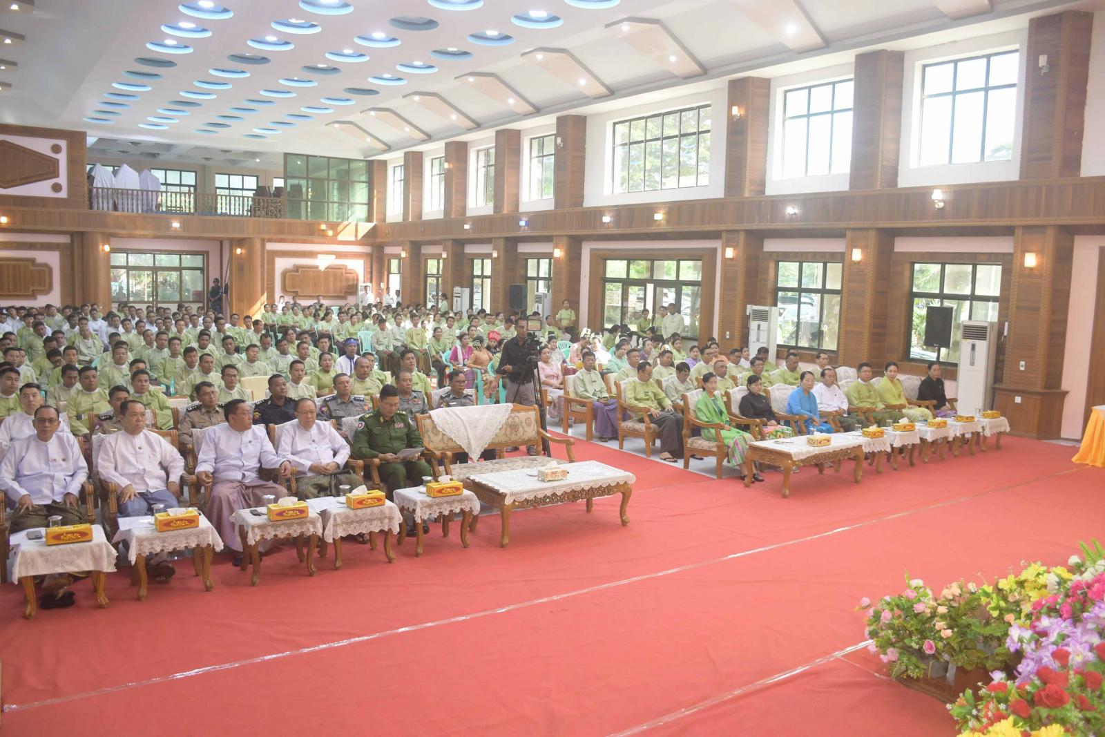 ထို့နောက် ရခိုင်ပြည်နယ်ဝန်ကြီးချုပ် ဦးထိန်လင်းက နိုင်ငံတော်၏ အမျိုးသားရေးမျှော်မှန်းချက်နှင့်နိုင်ငံရေး မျှော်မှန်းချက်များ အောင်မြင်အောင်အကောင်အထည် ဖော်ဆောင်ရွက်ရာတွင် အထွေထွေအုပ်ချုပ်ရေးဦးစီးဌာနသည် ပြည်သူကိုဗဟိုပြုသည့် ကောင်းမွန်သောအုပ်ချုပ်ရေးယန္တရား တည်ဆောက်ရေး၌ အဓိကကျသော ဌာနတစ်ခုဖြစ်ကြောင်း၊ ပြည်သူနှင့်တိုက်ရိုက်ထိတွေ့ပြီး ပြည်သူ့ဝန်ဆောင်မှုလုပ်ငန်းများကို ထိရောက်အောင်မြင်စွာ ဆောင်ရွက်ရာတွင် ဥပဒေ၊ နည်းဥပဒေ၊ လုပ်ထုံးလုပ်နည်းများနှင့်အညီ ဆောင်ရွက်ရမည်ဖြစ်ကြောင်း၊ ပြည်သူကယုံကြည်အားထားရသည့် အုပ်ချုပ်ရေးယန္တရားကောင်းဖြစ်စေရန်အတွက် နိုင်ငံတော်နှင့် လူမျိုးဂုဏ်သိက္ခာတို့ကို လေးစားတန်ဖိုးထားပြီး စံနမူနာပြဝန်ထမ်းကောင်းများဖြစ်အောင်ကြိုးစား ဆောင်ရွက်ရမည်ဖြစ်ကြောင်းပြောကြားသည်။
