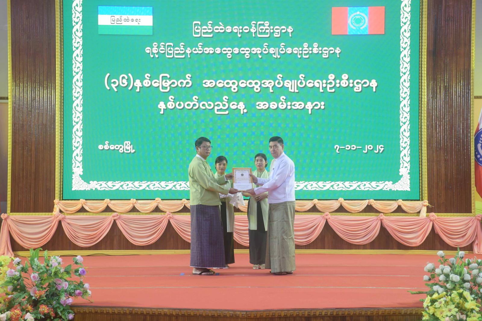 ဆက်လက်၍ ရခိုင်ပြည်နယ်အထွေထွေအုပ်ချုပ်ရေးဦးစီးဌာန၊ ဝန်ထမ်းများက “ထာဝရသစ္စာ” သီချင်းဖြင့် သီဆိုကပြဖျော်ဖြေကြပြီး အထွေထွေအုပ်ချုပ်ရေးဦးစီးဌာန(ရုံးချုပ်)မှ ပေးပို့သည့် video Clip အားပြသသည်။