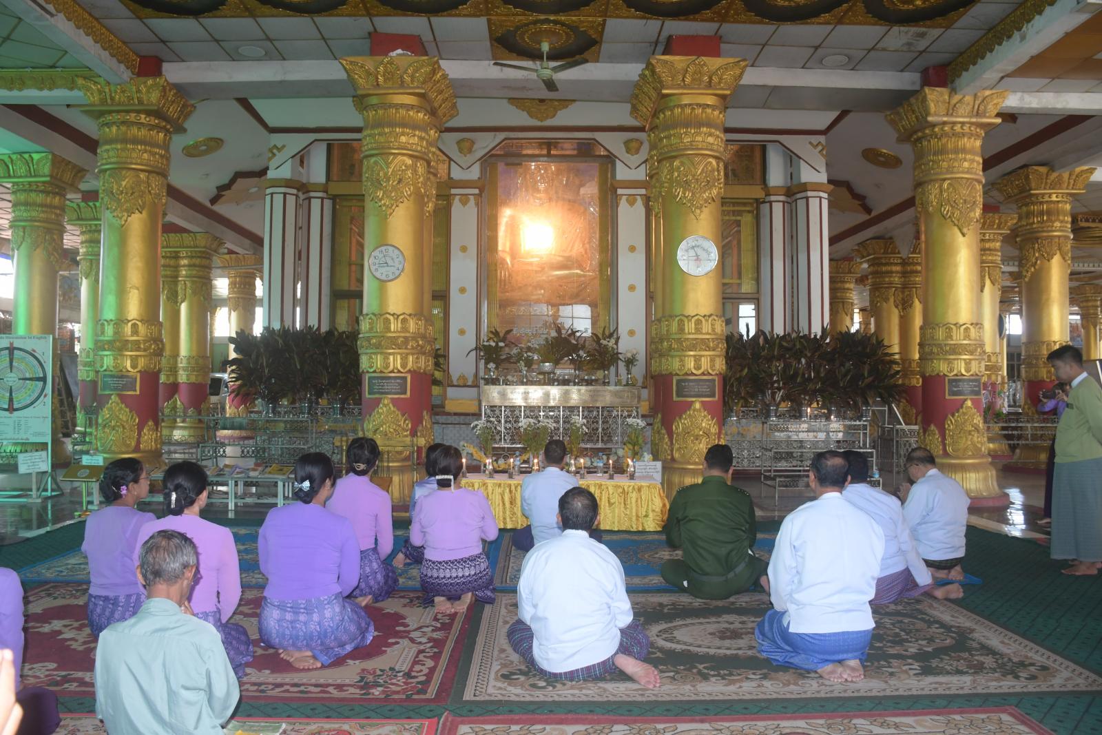 ဦးစွာ ရခိုင်ပြည်နယ်ဝန်ကြီးချုပ်နှင့်အဖွဲ့သည် စစ်တွေမြို့ အတုလမာရဇိန်ပြည်လုံးချမ်းသာ ဘုရားကြီးသို့ရောက်ရှိပြီး ဘုရားကြီးအားဖူးမြော်ကြည်ညိုကာ ပန်း၊ ရေချမ်း၊ ဆီမီးများ ကပ်လှူ ပူဇော်ကြသည်။