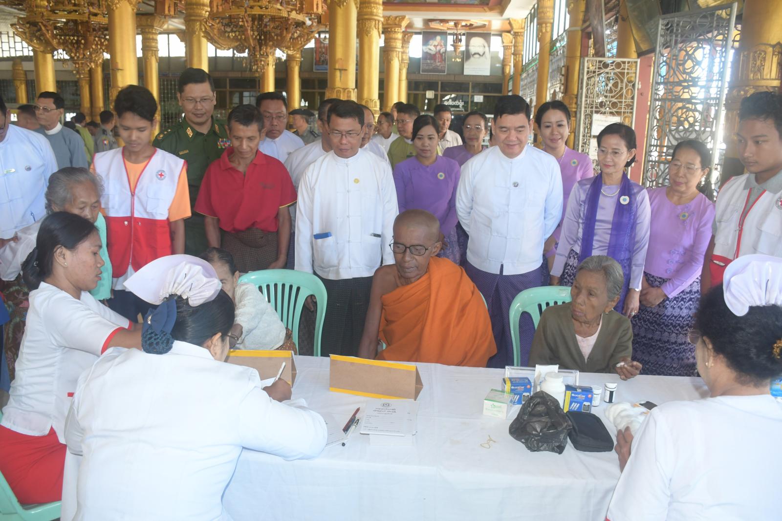 ယင်းနောက် ဒေသခံပြည်သူများကို ကျန်းမာရေးစောင့်ရှောက်မှုပေးခြင်းနှင့် စားသောက်ဖွယ်ရာများ ထောက်ပံ့ပေးအပ်ခြင်း ဆောင်ရွက်ရာတွင် ပြည်နယ်ကျန်းမာရေးဦးစီးဌာနမှူး ဒေါက်တာ ကြည်လွင်နှင့် စစ်တွေမြို့၊ ခုတင် ၅၀၀ ဆံ့ အထွေထွေရောဂါကုဆေးရုံကြီးမှ ဆေးရုံအုပ်ကြီးတို့က အနီးကပ်ကြီးကြပ်ကာ သမားတော်ကြီးများ၊ အထူးကုဆရာဝန်ကြီးများနှင့် ကျန်းမာရေးဝန်ထမ်းများက သွေးပေါင်ချိန်တိုင်းတာပေးခြင်း၊ သွေးအတွင်း အောက်ဆီဂျင်ပါဝင်မှု တိုင်းတာပေးခြင်း၊ ဆီးချို၊ သွေးချိုစစ်ဆေးပေးခြင်း၊ နှလုံးရောဂါ စစ်ဆေးခြင်းများကို ဆောင်ရွက်ပေးကြပြီး လိုအပ်သော ဆေးဝါးများကိုလည်း အခမဲ့ထုတ်ပေးကြသည်။ အလားတူ တိုင်းရင်းဆေးပညာဦးစီးဌာနမှလည်း ဒေသခံပြည်သူများအား တိုင်းရင်းဆေးဝါးများကို အခမဲ့ ထောက်ပံ့ပေးအပ်ခဲ့ကြသည်။