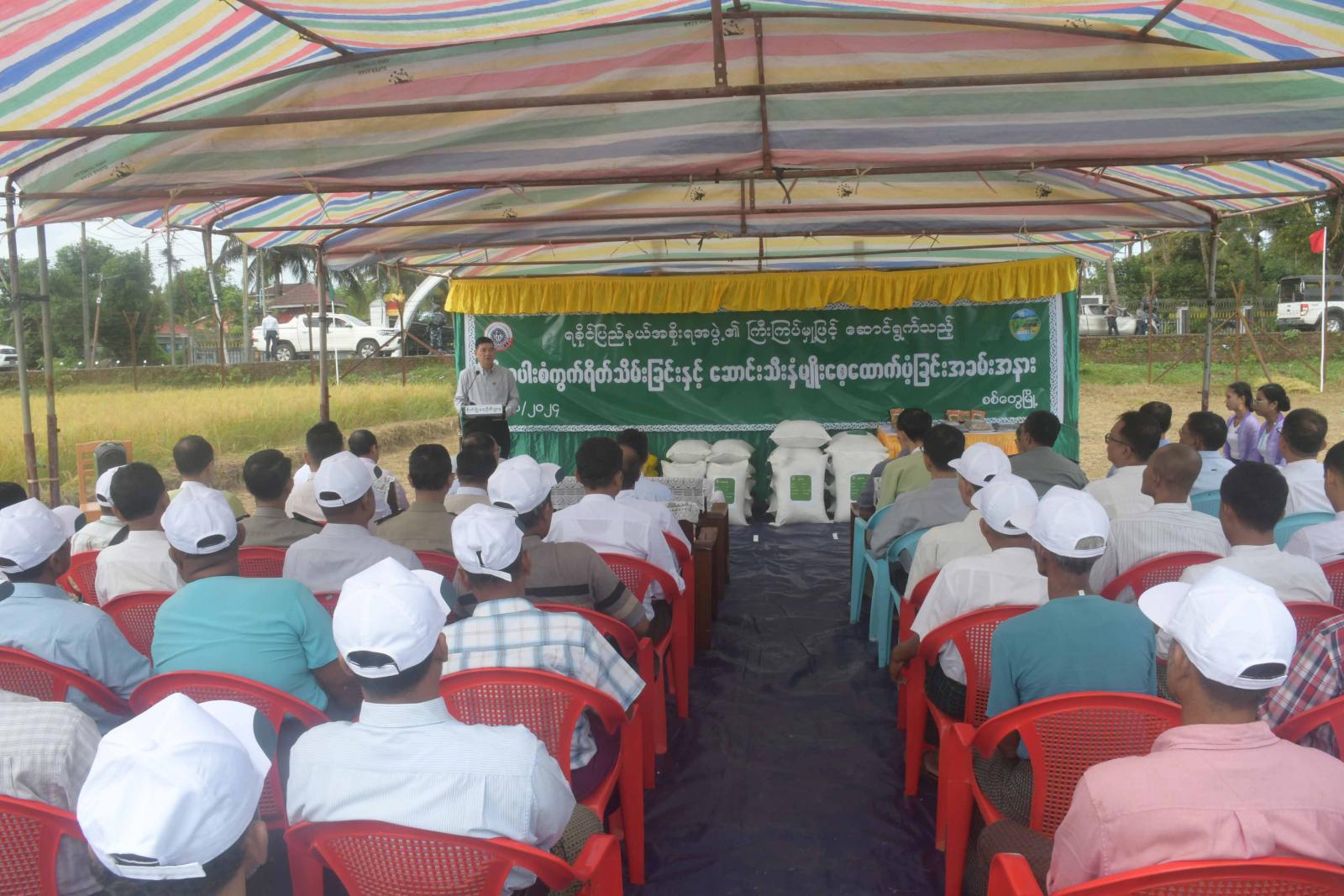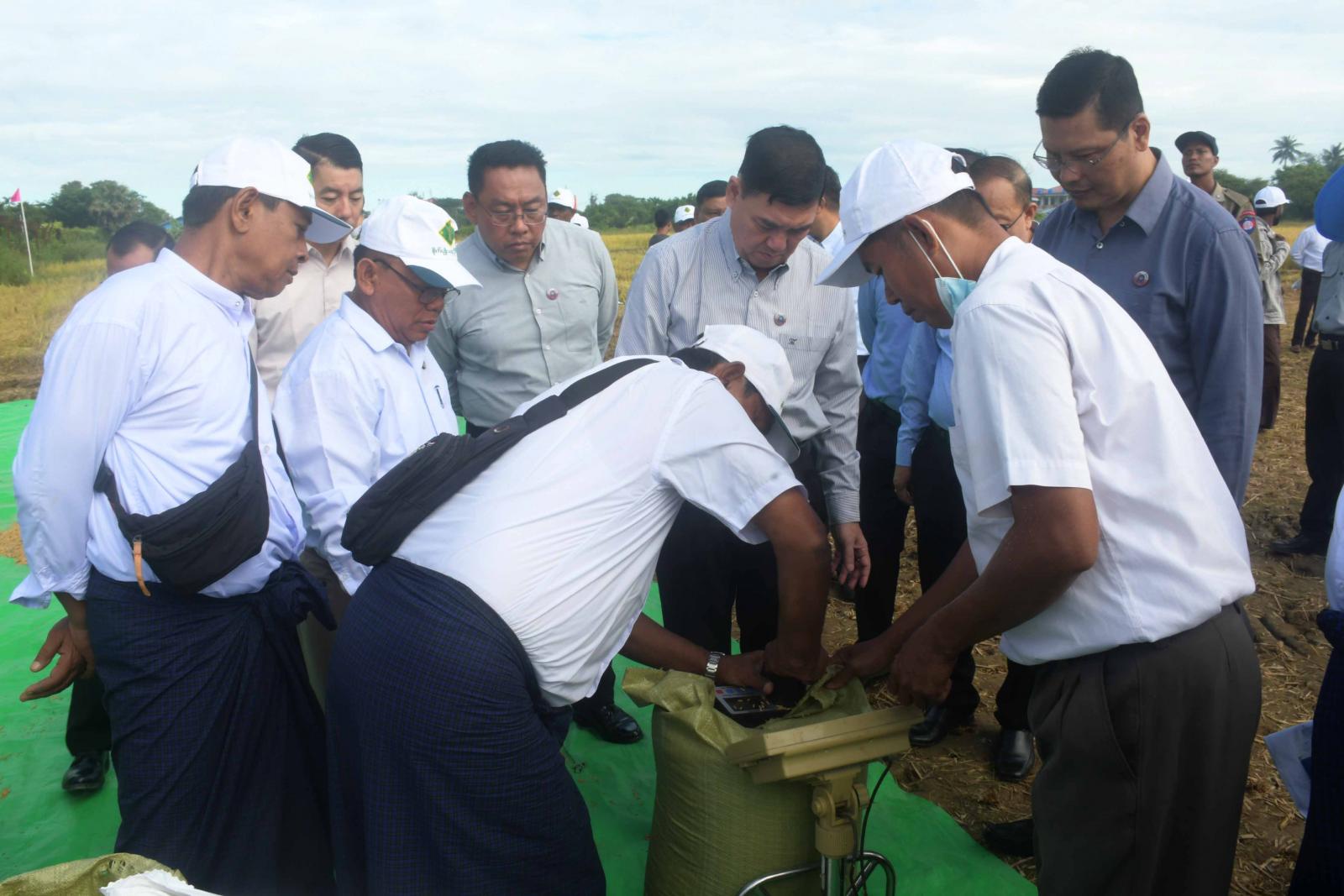 ရခိုင်ပြည်နယ်ဝန်ကြီးချုပ် ဦးထိန်လင်း၊ ပြည်နယ်အစိုးရအဖွဲ့ဝင်များ၊ ဌာနဆိုင်ရာတာဝန်ရှိသူများ၊ တောင်သူလယ်သမားသည် စစ်တွေမြို့ အကျဉ်းဦးစီးဌာန စိုက်ကွင်း၌ကျင်းပသော ရခိုင်ပြည်နယ်အစိုးရအဖွဲ့၏ ကြီးကြပ်မှုဖြင့်ဆောင်ရွက်သည့် မိုးစပါးစံကွက်ရိတ်သိမ်းခြင်းနှင့် ဆောင်းသီးနှံမျိုးစေ့များထောက်ပံ့ပေးအပ်ခြင်း အခမ်းအနားသို့ တက်ရောက်ကြသည်။