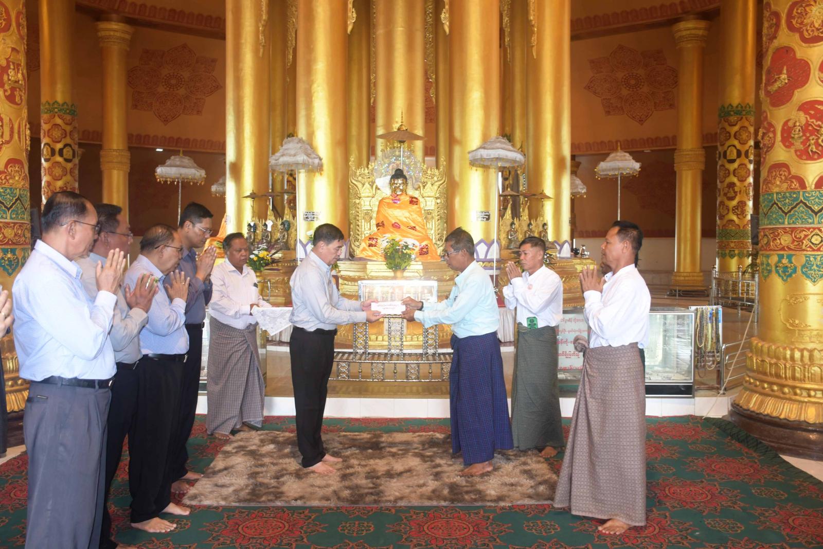 ဦးစွာ ပြည်နယ်ဝန်ကြီးချုပ်ဦးထိန်လင်းနှင့်အဖွဲ့သည် လောကာနန္ဒာစေတီတော်မြတ်ကြီး အတွင်းရှိ ဗုဒ္ဓရုပ်ပွားတော်မြတ်များအား ပန်း၊ ဆီမီး၊ ရေချမ်းများ ဆက်ကပ်လှူဒါန်းကာ စေတီတော်မြတ်ကြီး ဘက်စုံပြုပြင်နိုင်ရန်အတွက် အလှူငွေများပေးအပ်လှူဒါန်းကြသည်။